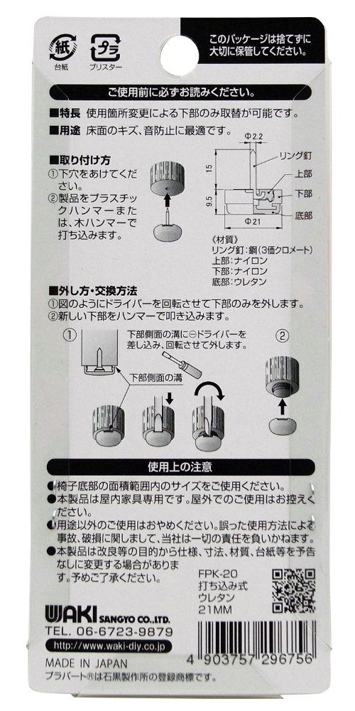 ■用途 床面のキズ、音防止に最適です。 安全警告 この製品は屋内家具専用です。屋外での使用はお控え下さい。用途以外のご使用はおやめください。誤った使用方法による事故・破損に関しまして、当社(メーカー)は一切責任を負いかねます。 ご注意(免責)>必ずお読みください