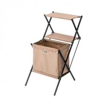 屋内・屋外どちらも様々なシーンで活躍します。フォールディングマガジンラックです。深さのある大容量のバスケットには雑誌や小物類をたっぷり収納。棚にはMDF板が入っているので、ビンやカップ等安定して置けます。