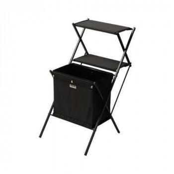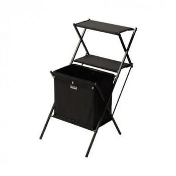 屋内・屋外どちらも様々なシーンで活躍します。フォールディングマガジンラックです。深さのある大容量のバスケットには雑誌や小物類をたっぷり収納。棚にはMDF板が入っているので、ビンやカップ等安定して置けます。