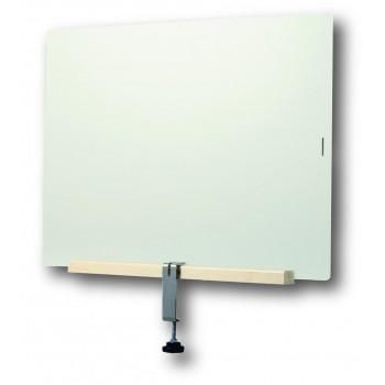 台座の幅はわずか4cm。場所をとらない省スペース設計。木製の台座が温かさと安定感を演出します。テーブルやカウンターの天板に付属の専用クランプで固定して使用します。取り付け簡単で倒れる心配もありません。テーブルの端、中仕切り、アクリル板の縦・横と、1台で4通りの使い方ができます。