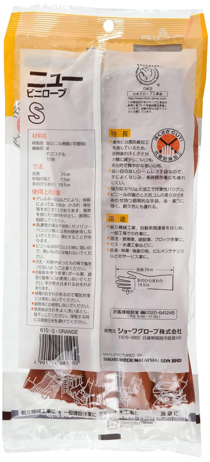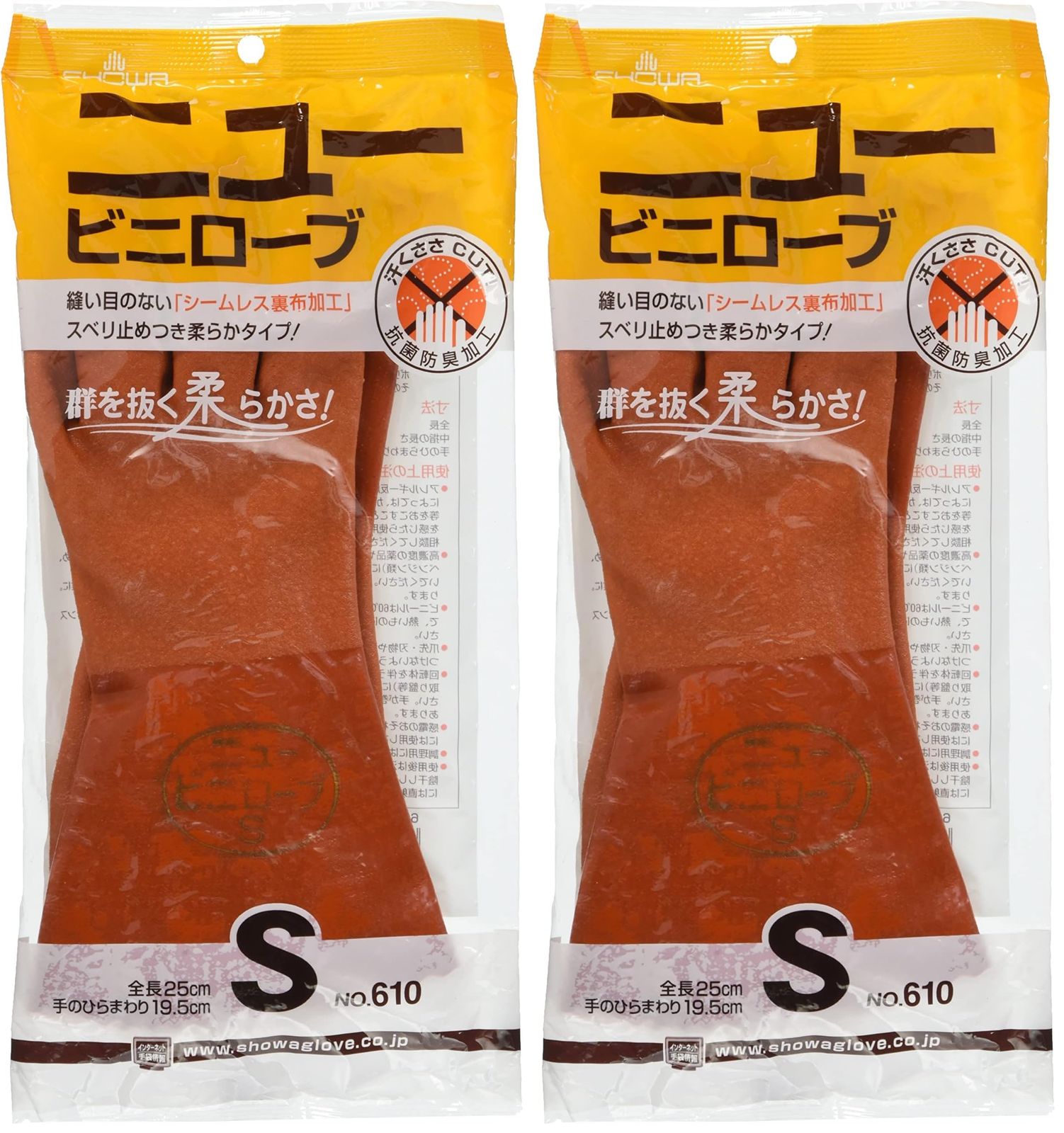 新品 ショーワグローブ(Showaglove) 作業用手袋 No610 ニュービニローブ Sサイズ 1双 2個セット オレンジ