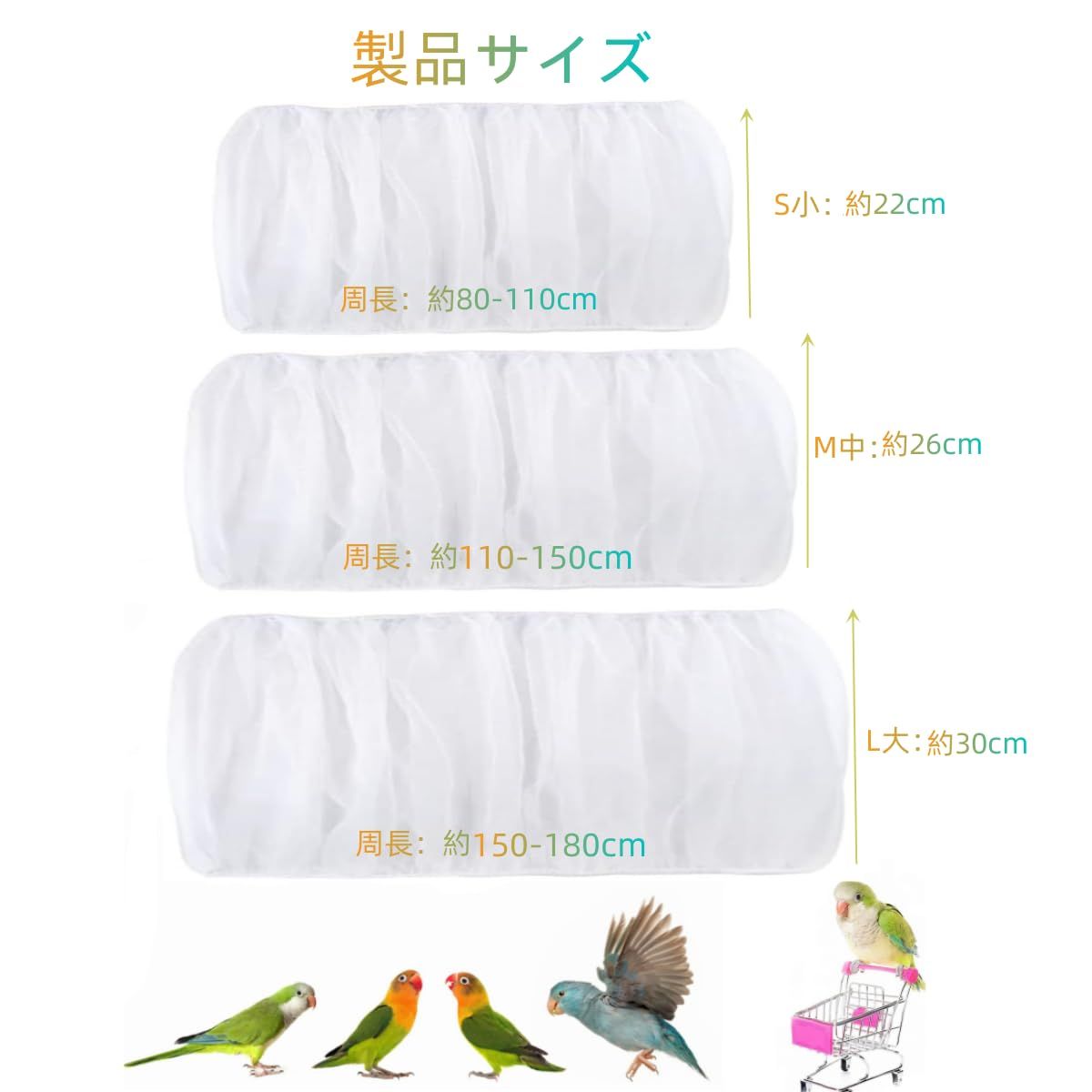 【サイズ】S小:(周長:約80-110cm高さ約20cm)M中:(周長:約110-150cm高さ約23cm)L大:(周長:約150-180cm高さ約28cm)ニーズによりサイズ選択可能です。お手持ちの鳥かごのサイズをご確認の上お求めください。