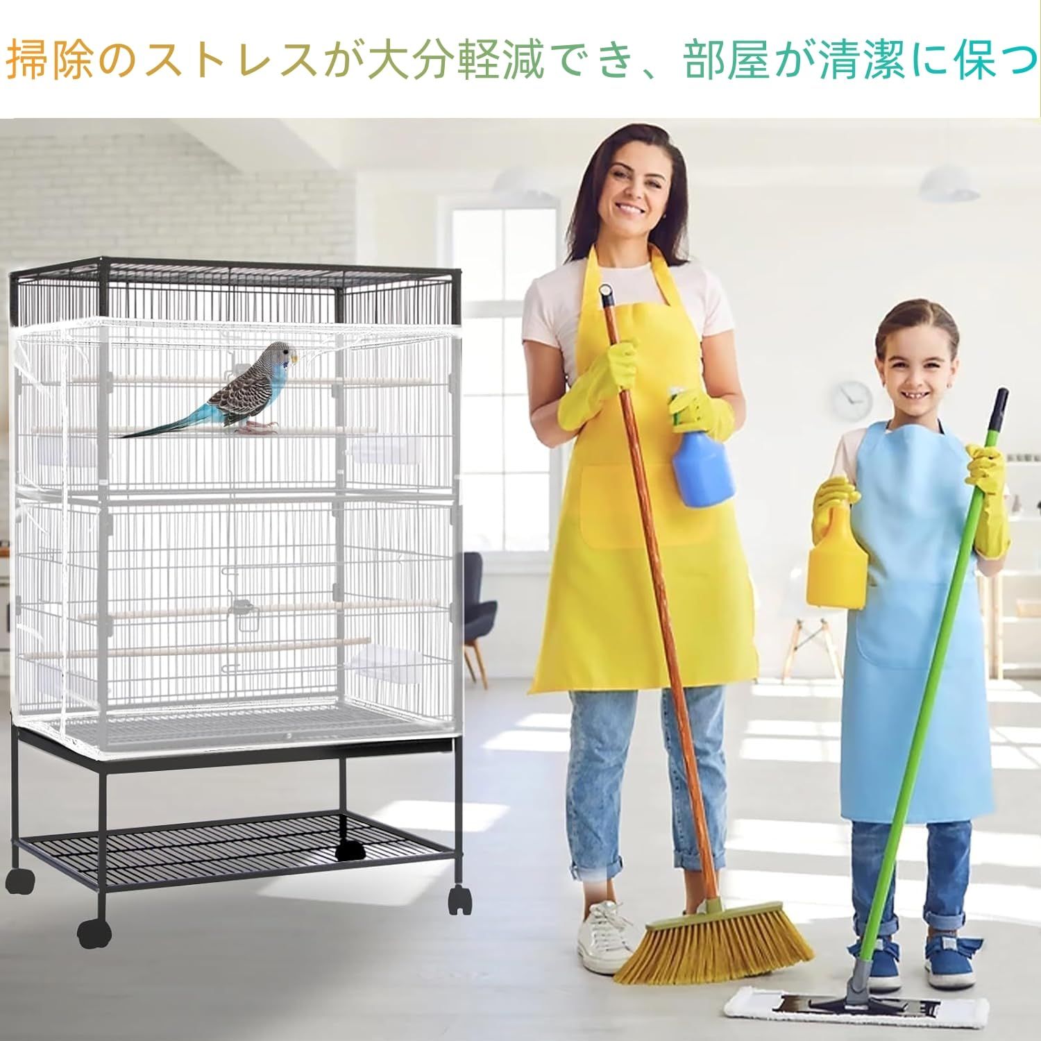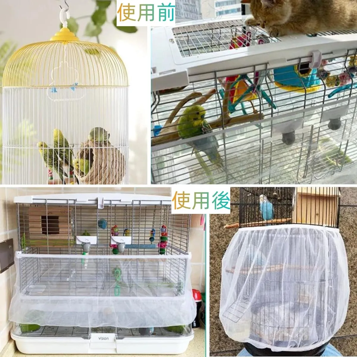 【使い便利】餌、羽、糞、尿、等の飛び散り汚染防止効果があり、部屋を清潔に保つ、掃除も楽に行える飼い主さん必見のアイテムです。