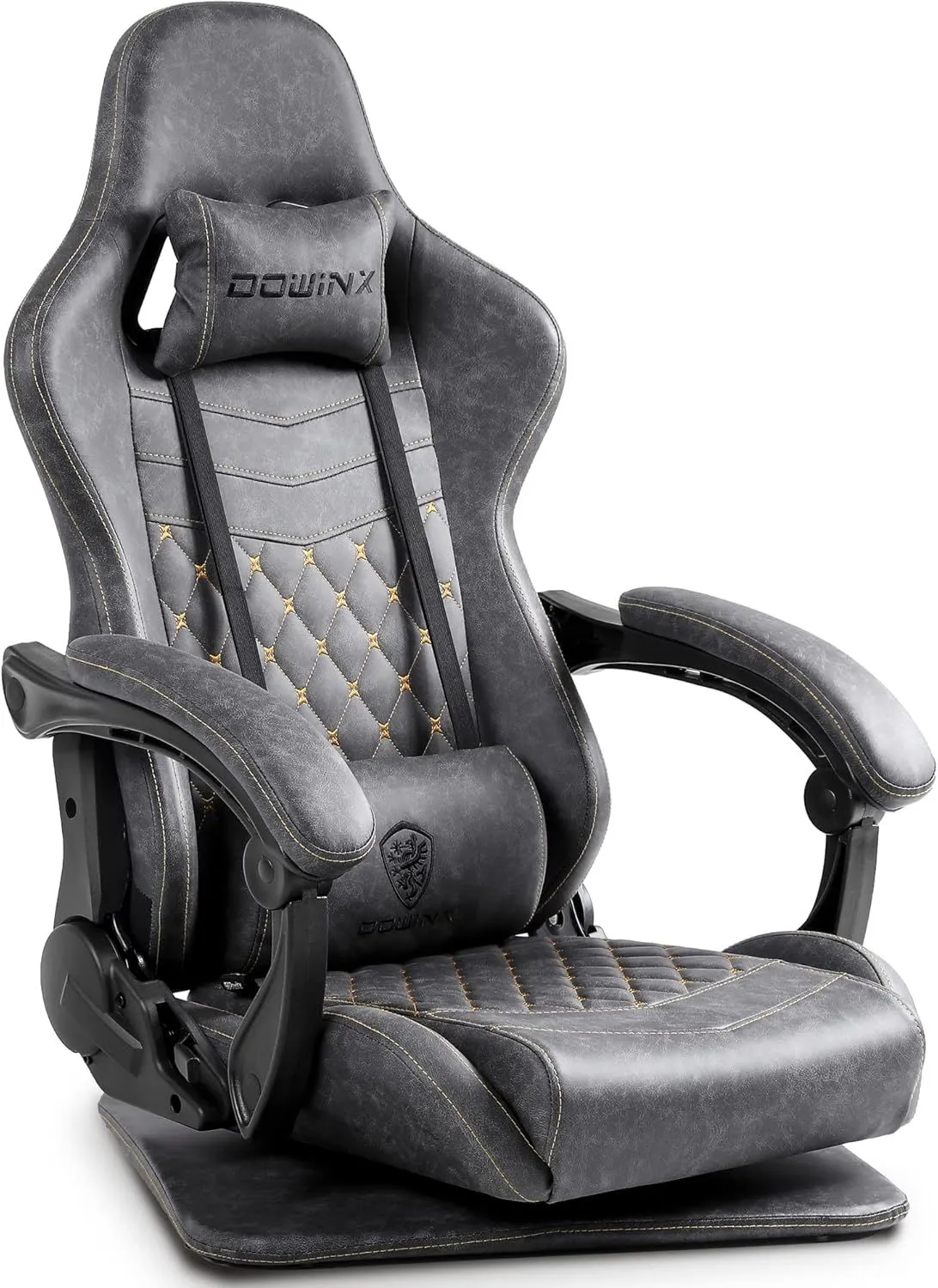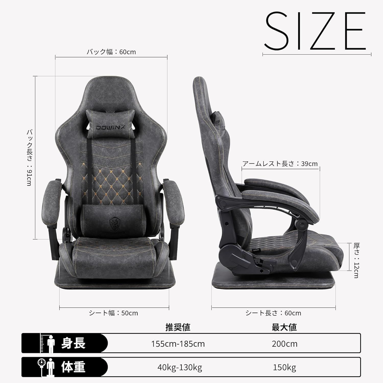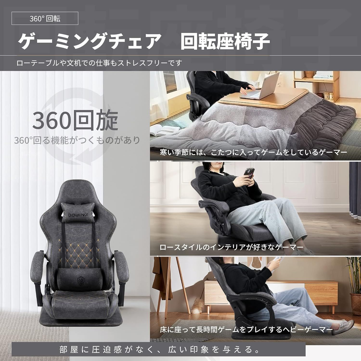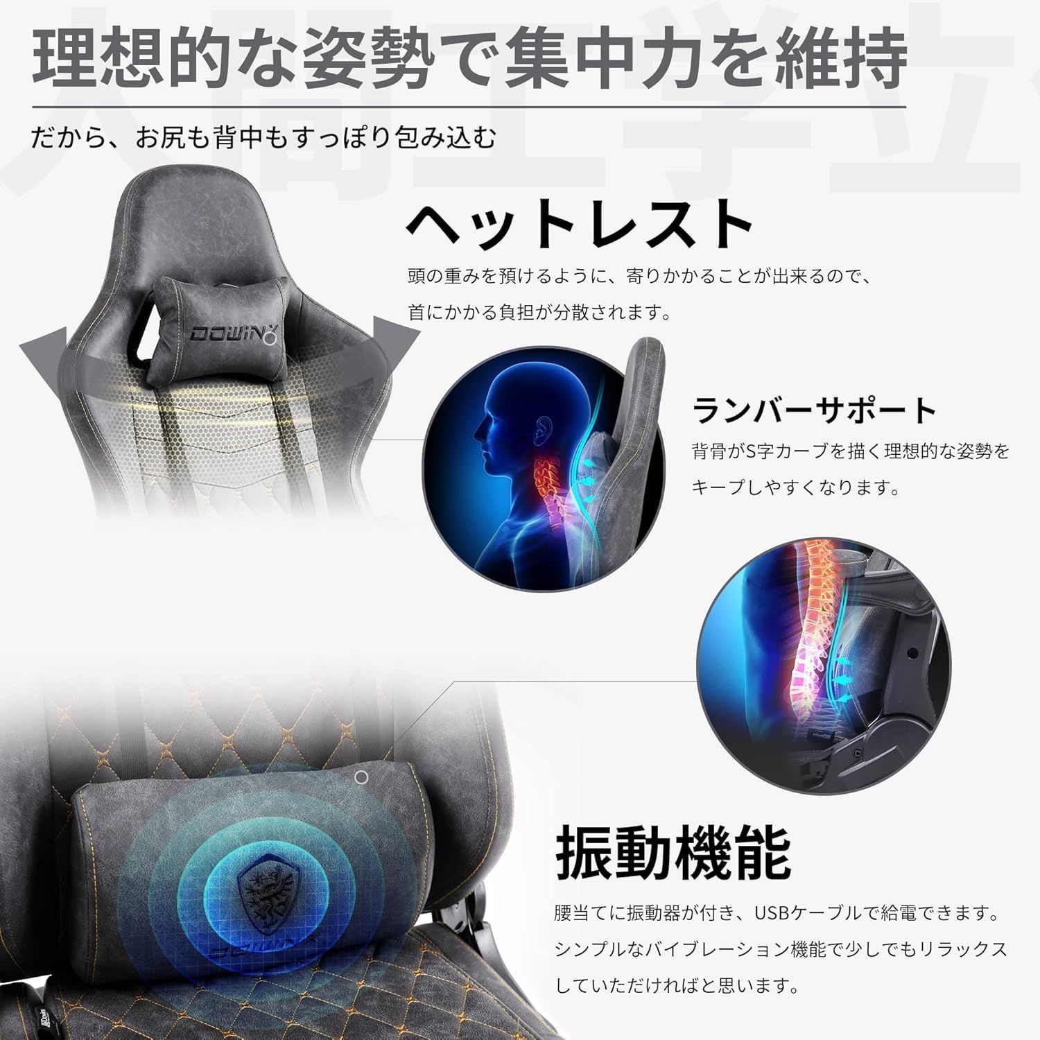 Dowinx ゲーミング座椅子 ゲーミングチェア 腰が痛くならない 回転座椅子 おしゃれ ゲーム ゲーミング パソコンチェア 連動アームレスト ランバーサポート 165°リクライニング チェア ハイバック グレー LS-667903