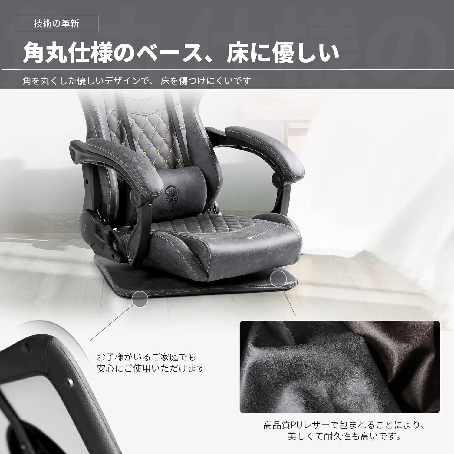 【落ち着いたゲーミング座椅子】通常のカラフルで派手なゲーミングチェアとは異なり、高級PUレザーとシンプルな配色を採用しており、和室にも洋室にも適した落ち着いたデザインのチェアです。お手入れも簡単で、どんな部屋にも自然に溶け込みます。