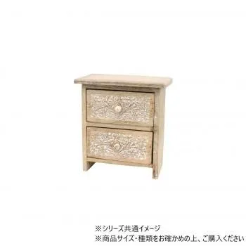 マンゴーウッドを使用した、ナチュラルテイストのチェスト。ボタニカルデザインがお部屋を優しく心地よい雰囲気に演出してくれます。机や棚の上の整理に活躍してくれます。