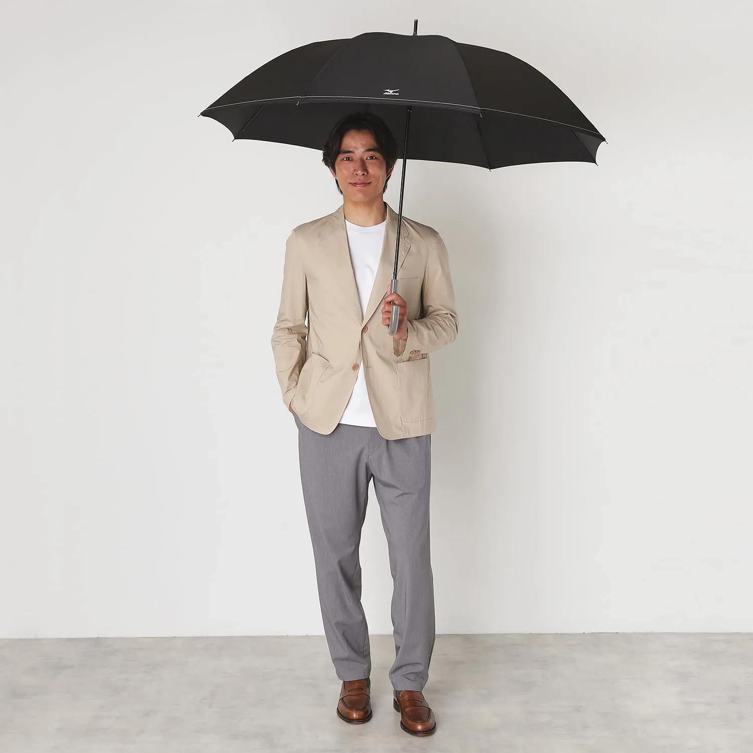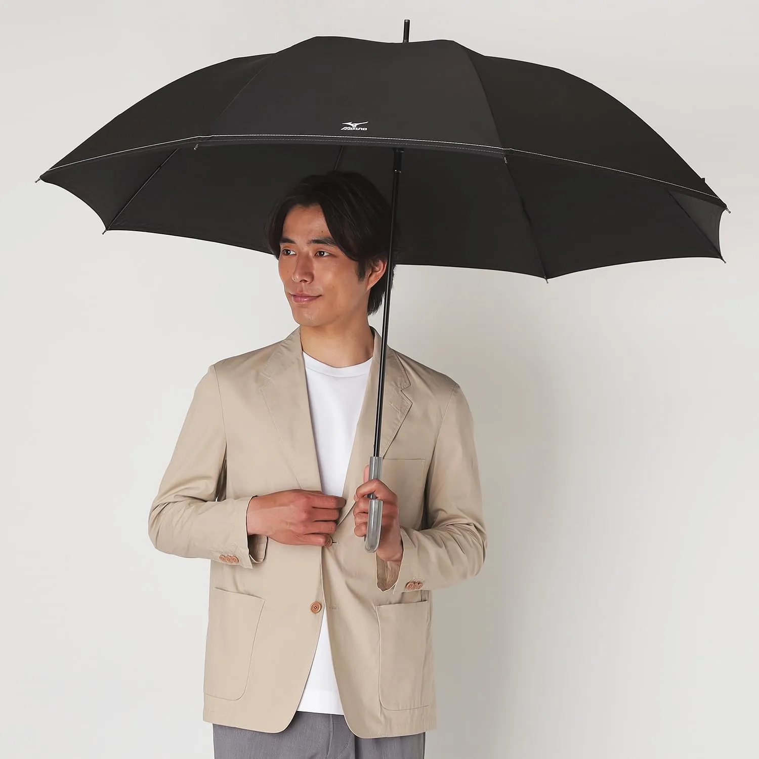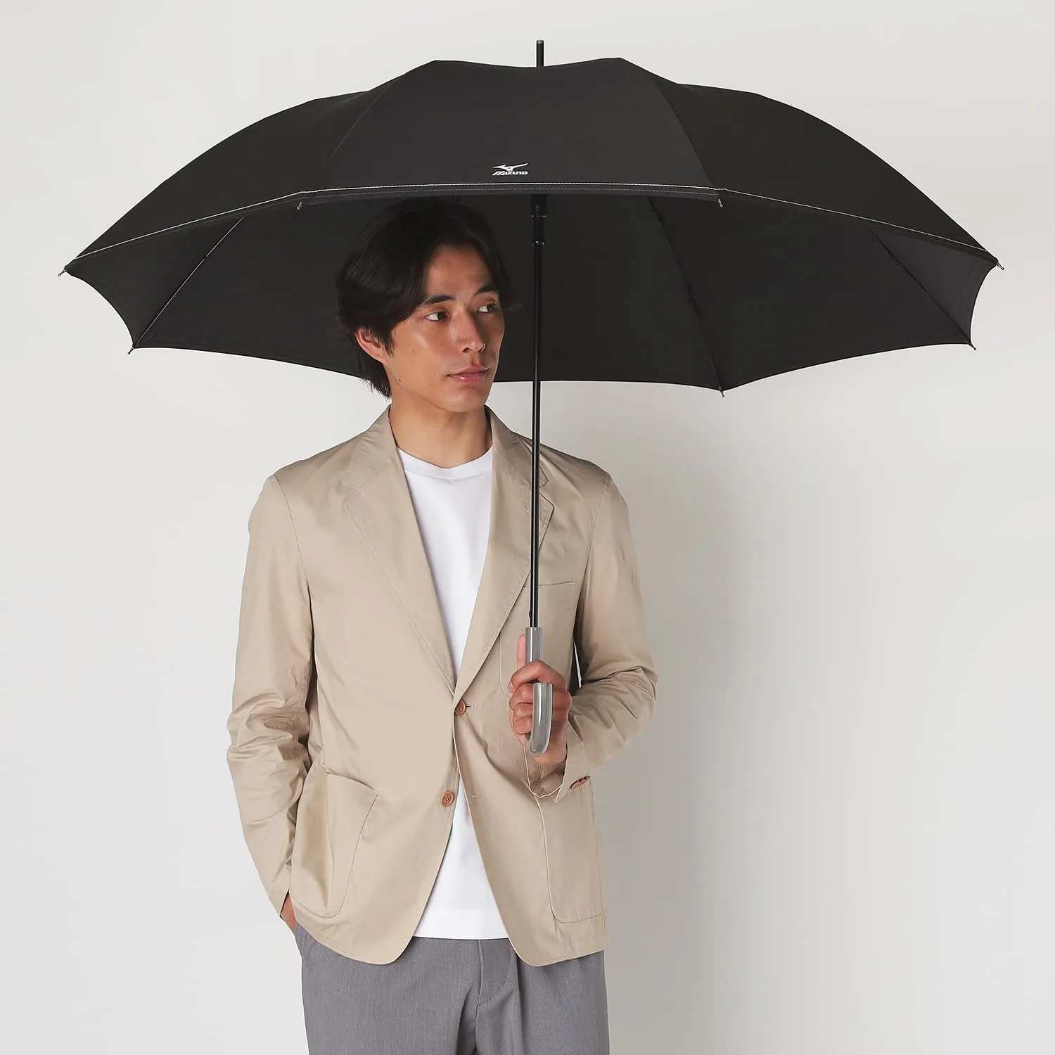 持ち手がメタリック加工を施した日本を代表するスポーツメーカー「MIZUNO」の雨傘です。 無地なので何にでも合わせやすく、デイリー使いしやすいのがポイント。