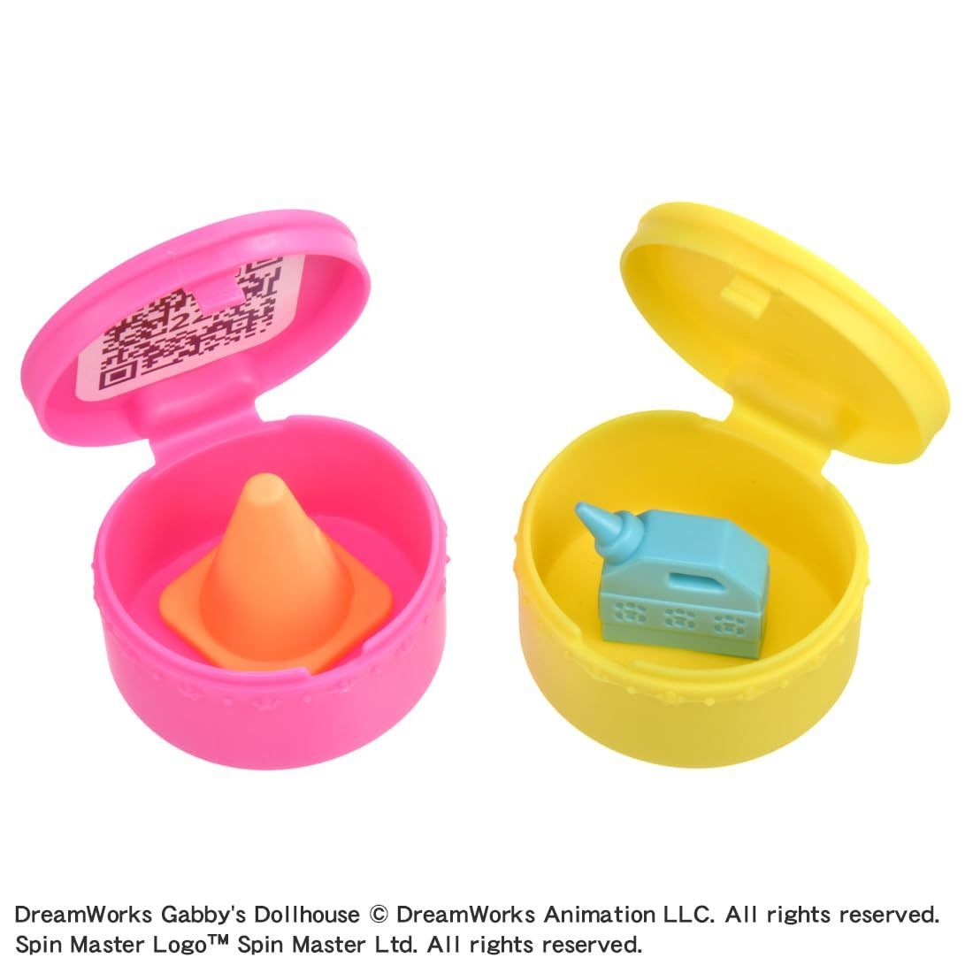 ・付属のネコちゃんボックスの1つに付いているコードをスマホで読み取ると、無料のギャビーのドールハウスアプリで遊べる限定アイテムがゲットできます。