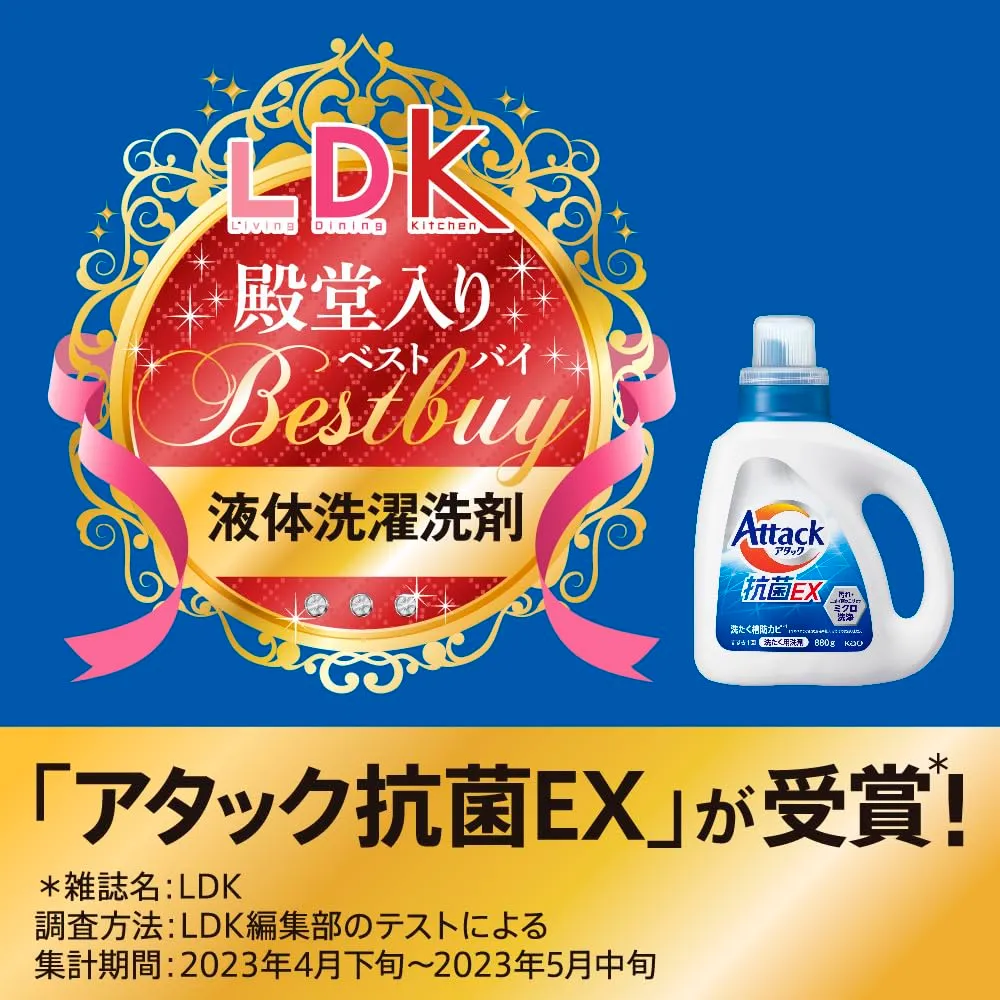 アタック抗菌EX 洗濯洗剤 液体 洗ってもぶりかえすゾンビ臭断絶へ! 本体 880g [スプラッシュクリアの香り] [880グラム (x 1)]