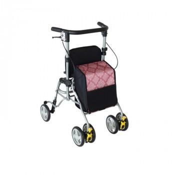 小柄な方でも使いやすいスリムな歩行車です。狭い場所も小回りがきき、操作しやすい。使用時、収納時もコンパクトな横幅で小回りがきいて扱いやすい。バッグは荷物の出し入れがしやすい仕様です。フタ部分にはチャック式のポケットがあり、小物が入れられます。