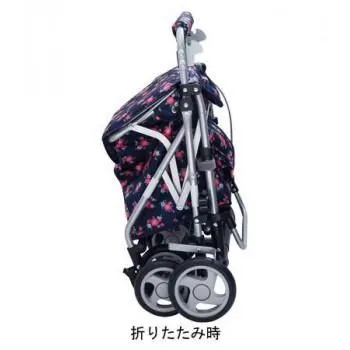 アルミ車体の軽量タイプです。収納力+買い物カゴ置き付きで便利です。折りたたんでコンパクトに自立します。