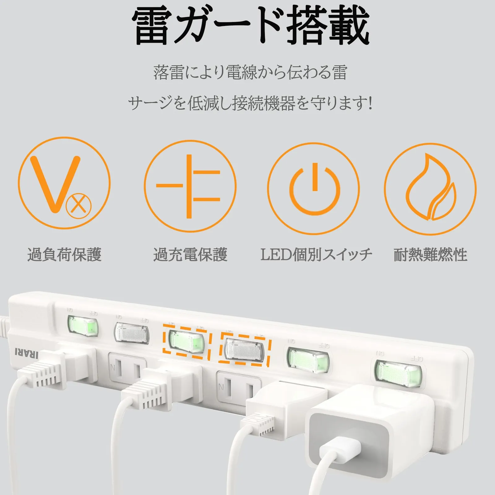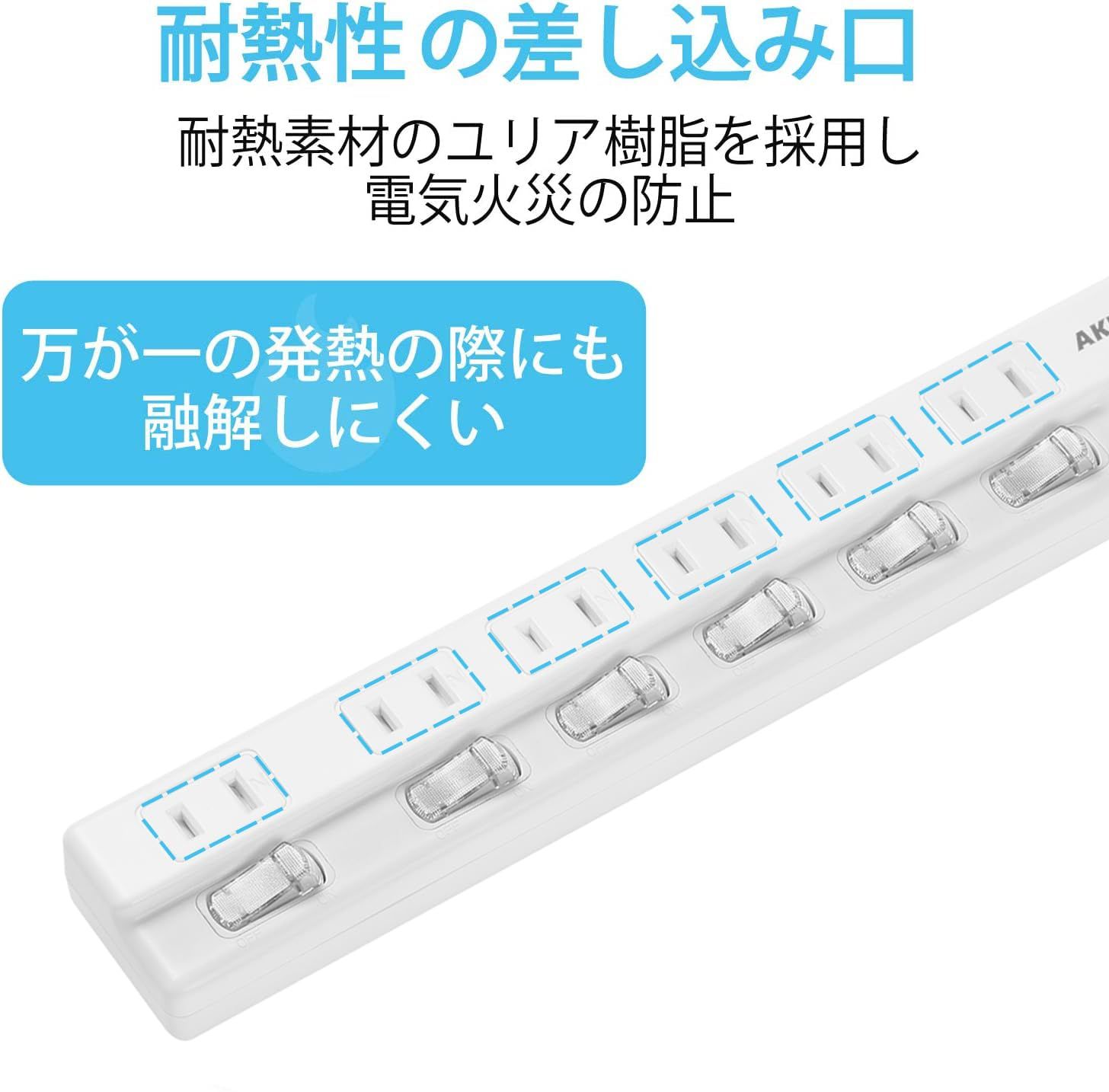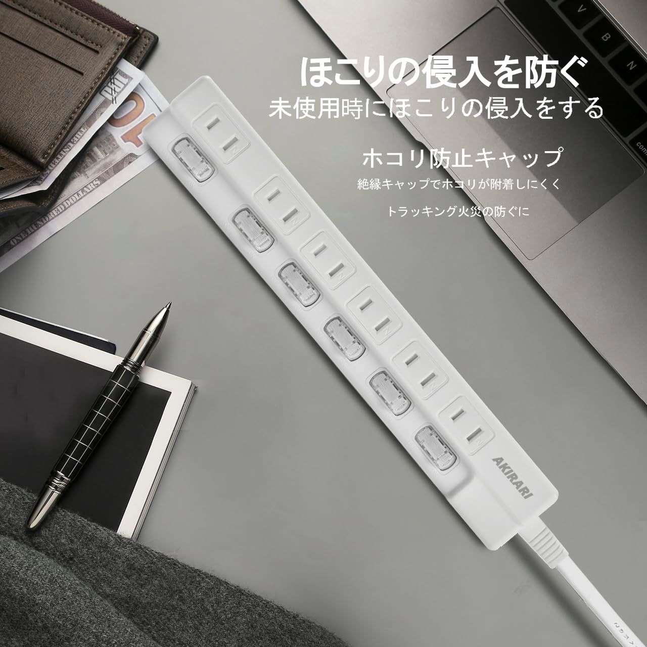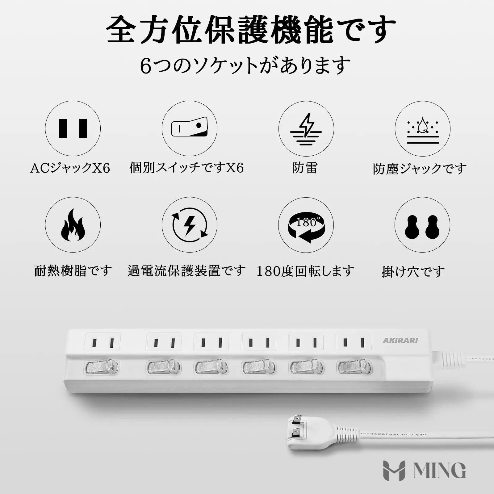 [電源タップ専門家] 延長コード 1m 電源タップ 個別スイッチ AKIRARI 6個口 雷ガード ほこりシャッター 火災予防安全 コンセントタップ スイッチ電源タップ テーブルタップ 過電流 過熱保護 180度スイングプラグ トラッキング防止 壁 卓上
