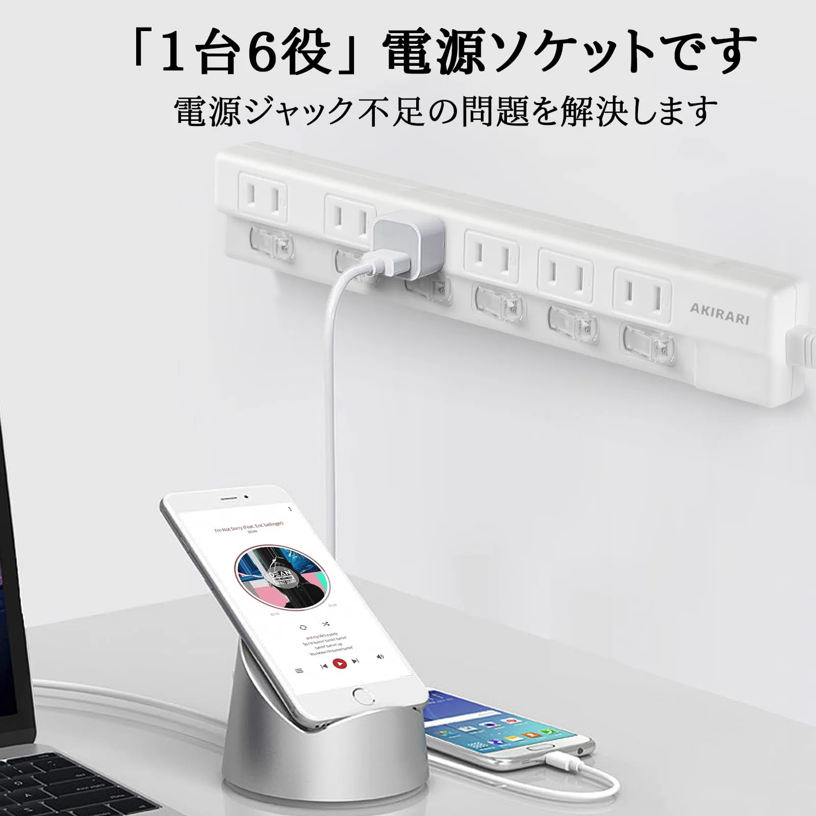【人気商品】テーブルタップ スイッチ電源タップ コンセントタップ 過電流 火災予防安全 過熱保護 ほこりシャッター 雷ガード 180度スイングプラグ 6個口 AKIRARI トラッキング防止 個別スイッチ 電源タップ 壁 1m 延長コード 卓上 [電源タップ専