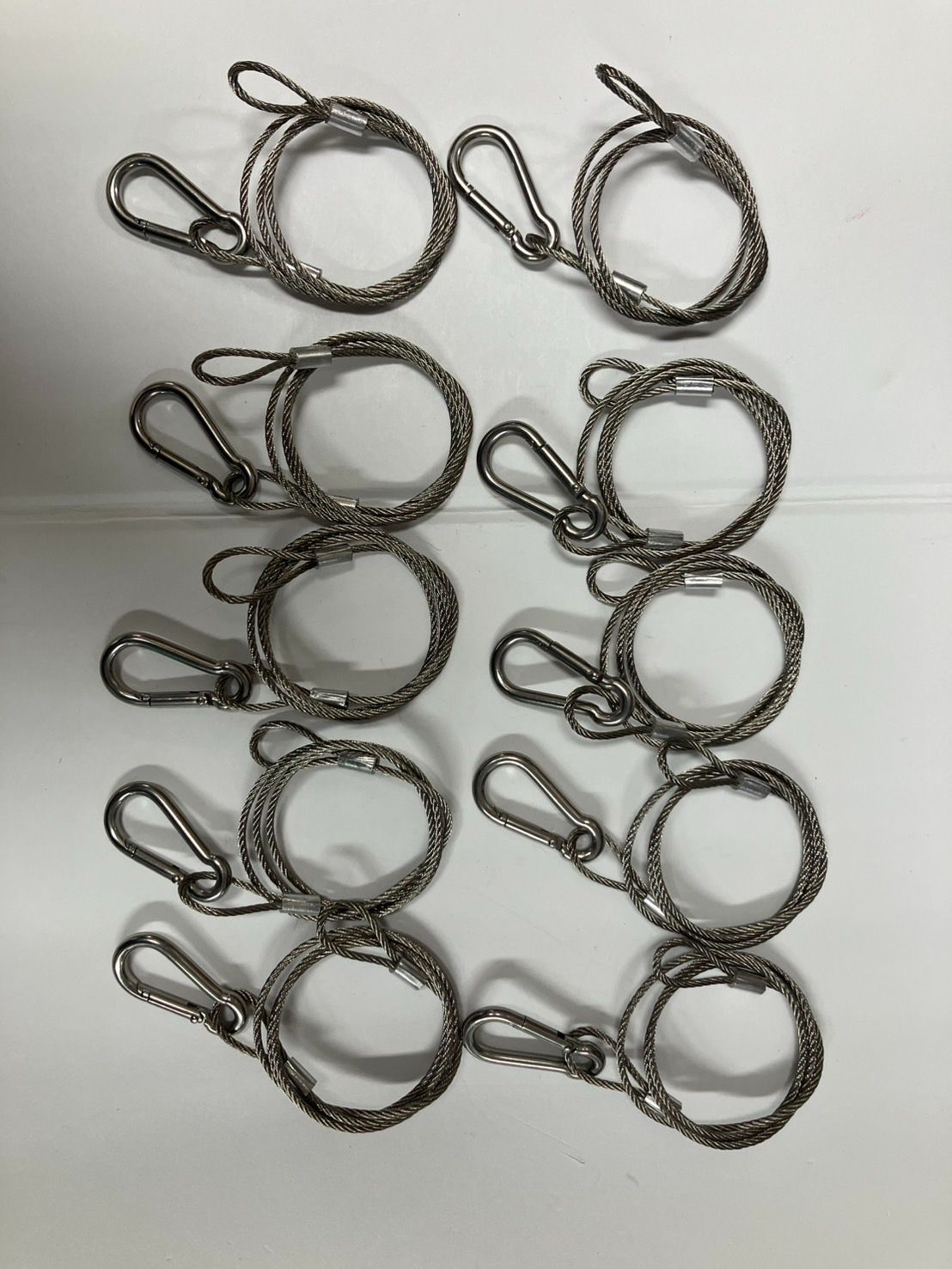 落下防止ワイヤー セキュリティワイヤー カラビナ付(10本セット)