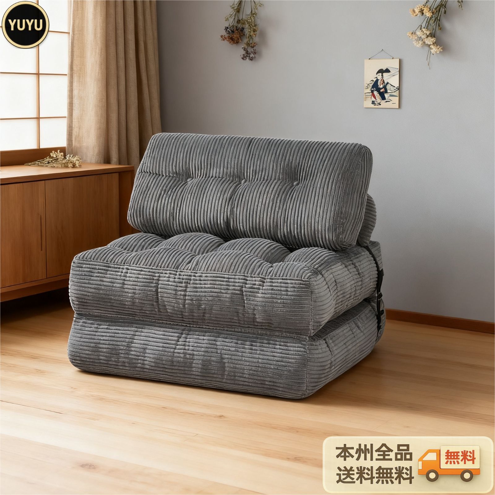 ・耐久性のある生地:プレミアムなコーデュロイ生地を使用し、独自の視覚的・触覚的な体験を提供。お部屋の雰囲気を格上げします。