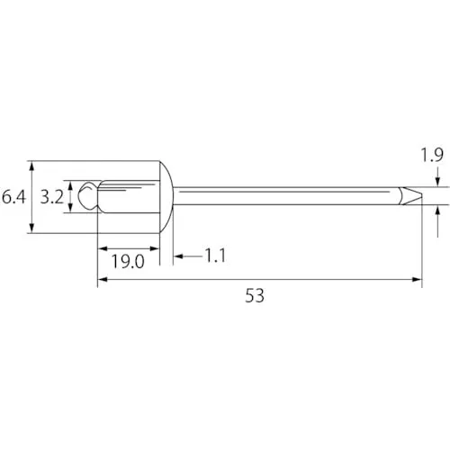 ●片側から複数の母材をワンアクションで締結できます。溶接に比べて作業の省力化や生産性の向上にメリットがあります。 かしめ板厚(mm):12.7~15.9 リベット長(mm):19.0 フランジ径(mm):6.4 リベット径(mm):3.2 下穴径(mm):3.3~3.4 せん断荷重(N):870 引張荷重(N):1340 頭部径(mm):- 最後までご確認頂き誠にありがとうございました。 上記をご確認頂き、ご購入いただけましたら幸いです。 何かご不明な点がございましたらお気軽にメッセージからお問い合わせ下さい。