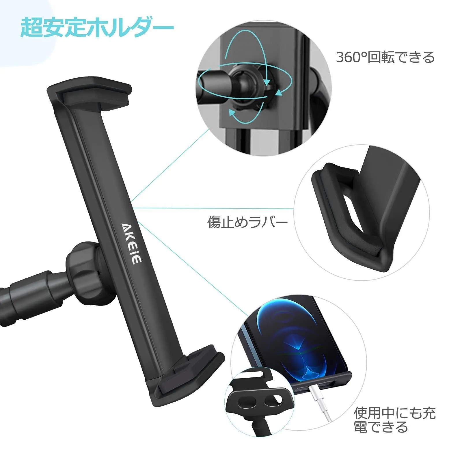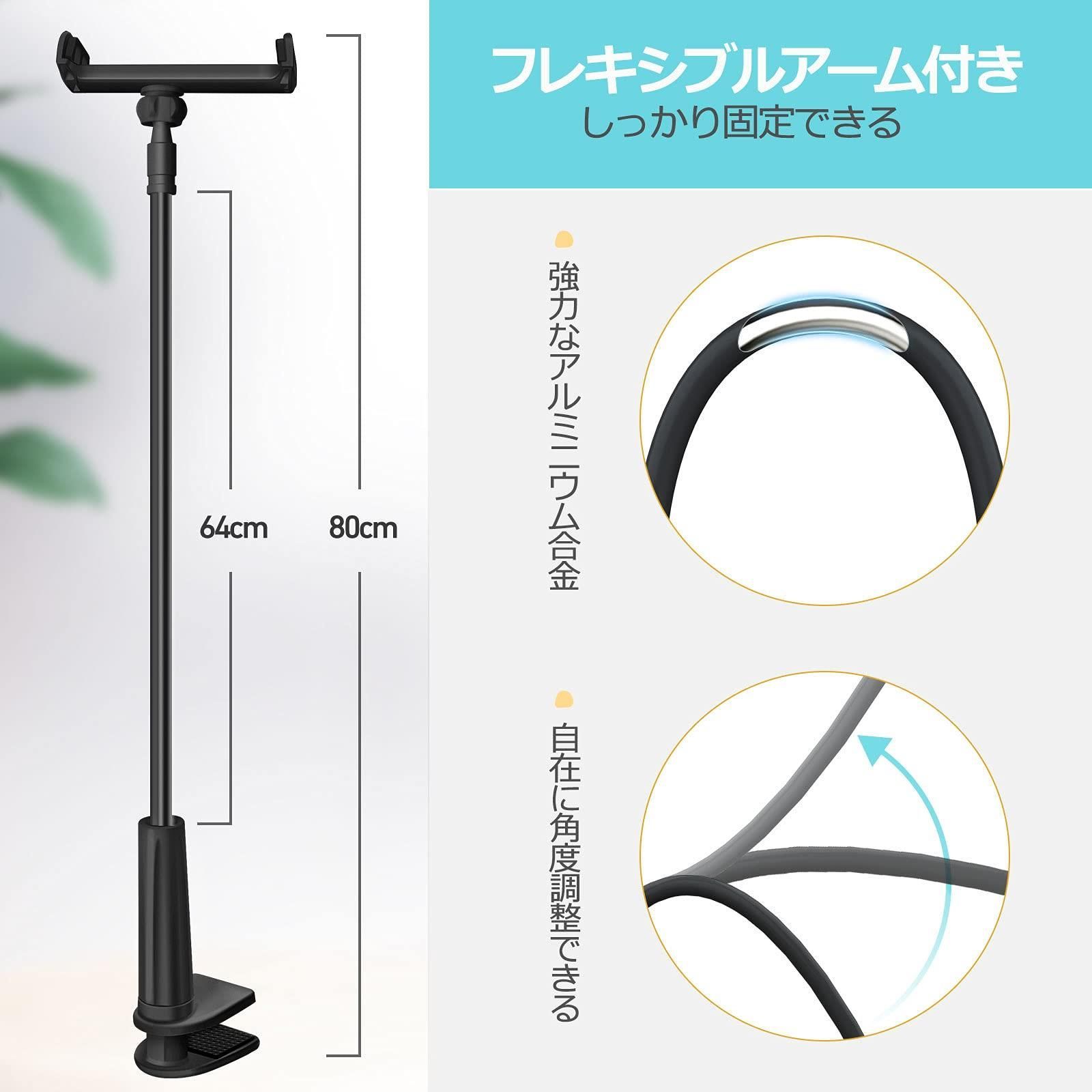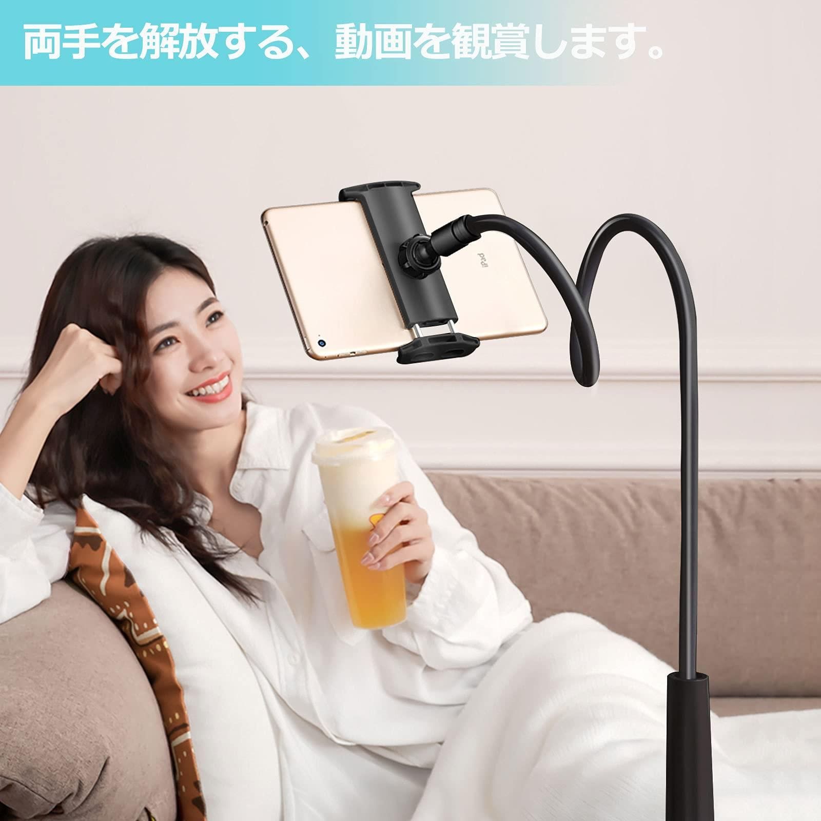 AKEIE スマホ & タブレット スタンド or ホルダー 4-10インチ対応 フレキシブルアーム付き 寝ながらスタンドfor iphone ipad mini ipad air2 REGZA Xperia Galaxy SONY Kindle Switch (ブラック)