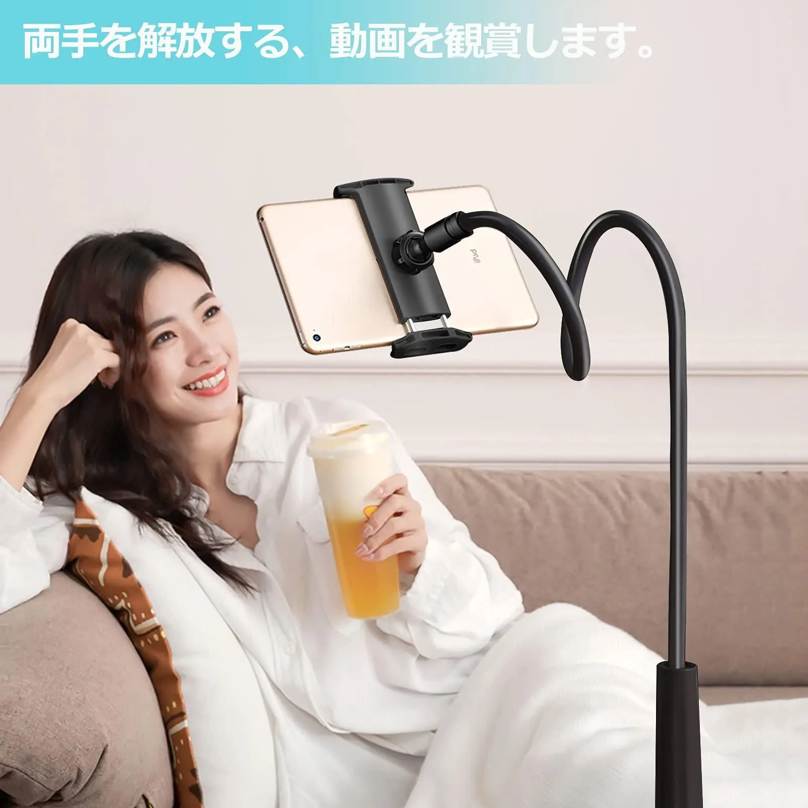 AKEIE スマホ & タブレット スタンド or ホルダー 4-10インチ対応 フレキシブルアーム付き 寝ながらスタンドfor iphone ipad mini ipad air2 REGZA Xperia Galaxy SONY Kindle Switch