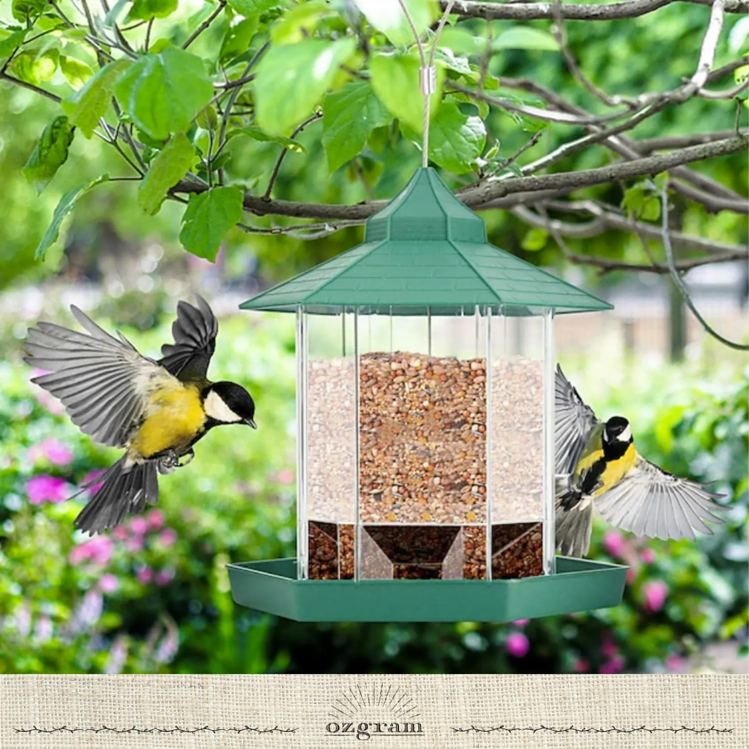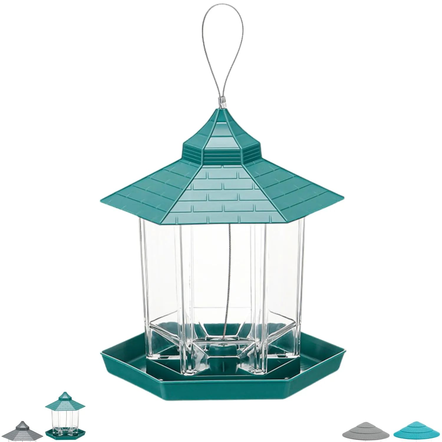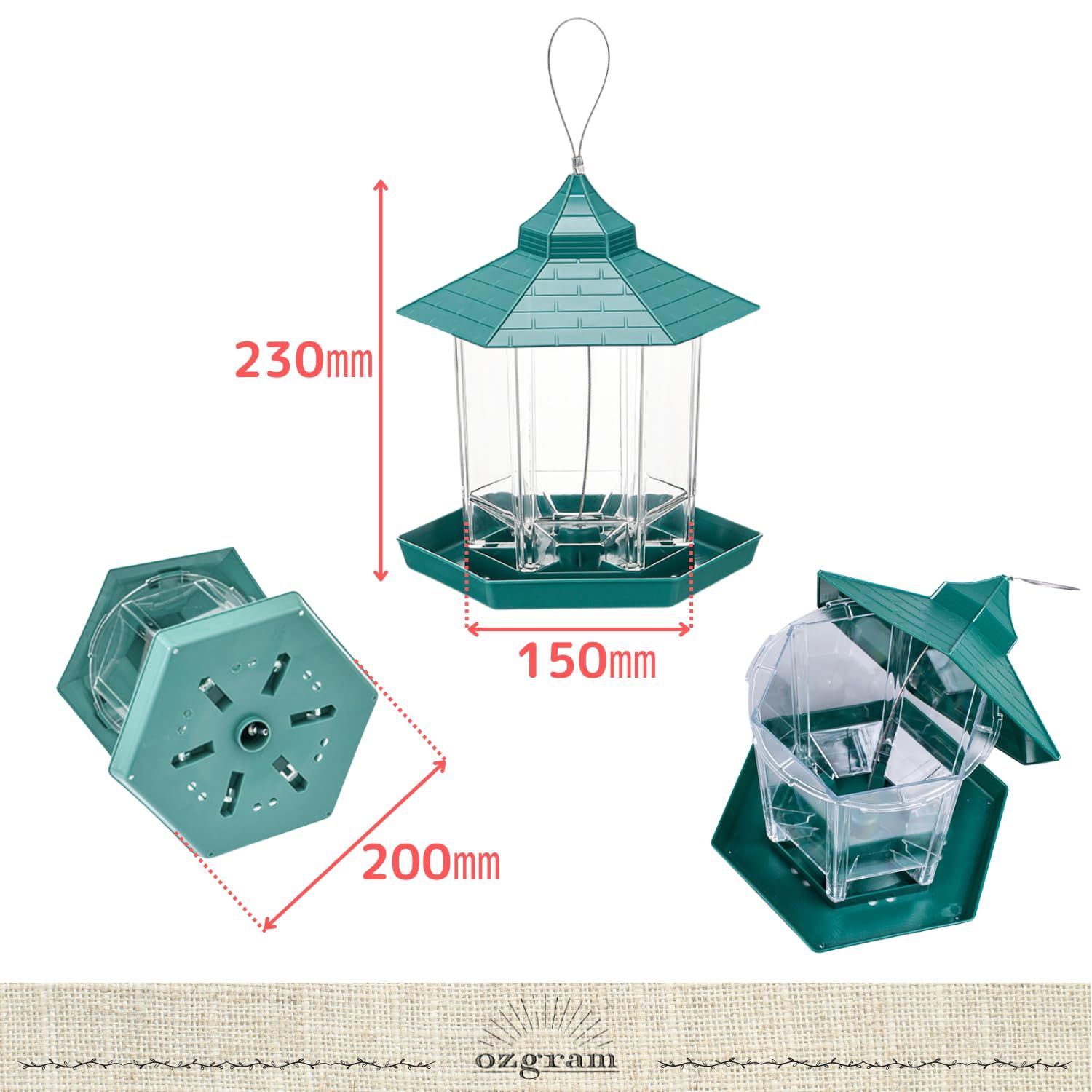【在庫処分】バードフィーダー 【6角型ルーフ】 【グリーン】 野鳥給餌器 鳥の餌台 餌入れ 野鳥観察 バードウォッチング 野鳥 屋外 吊下げ 庭 ガーデン ベランダ テラス