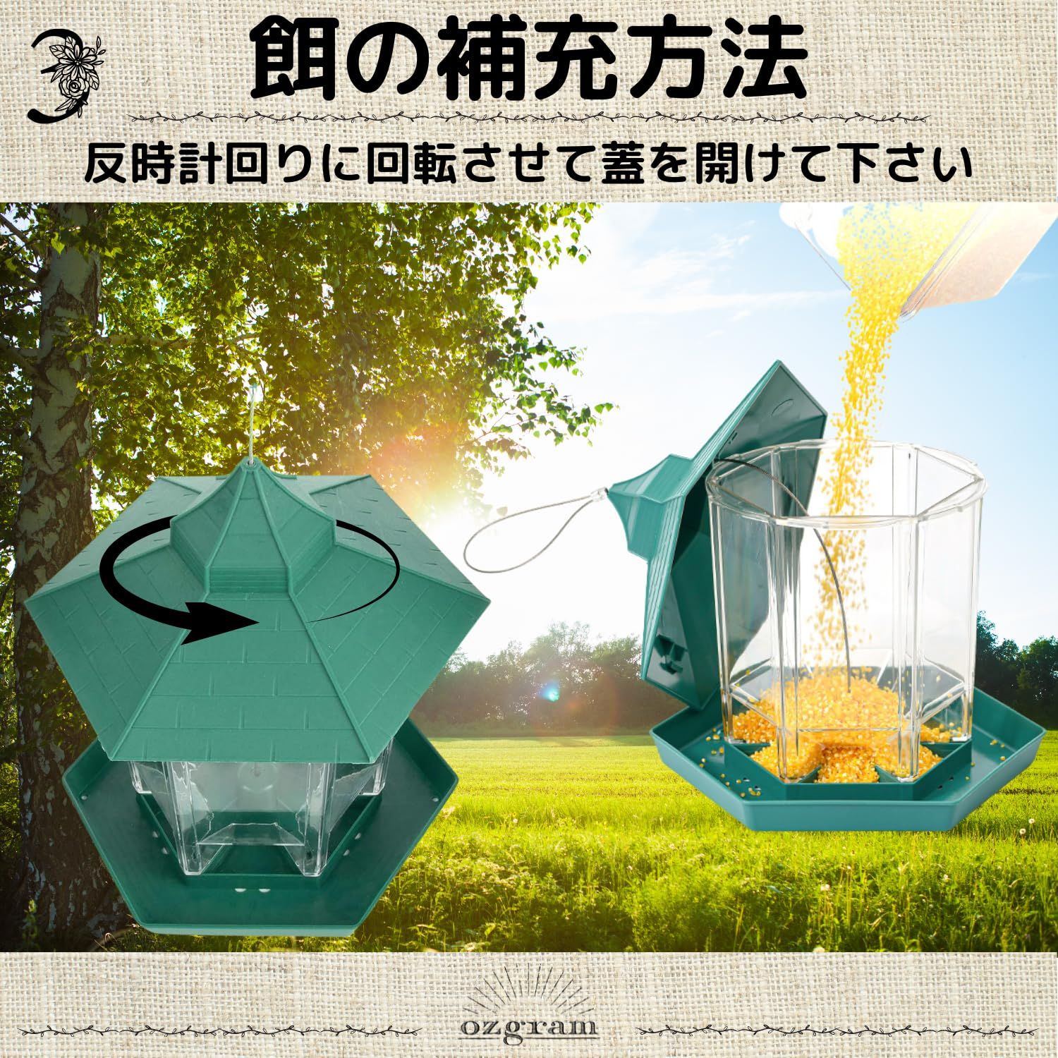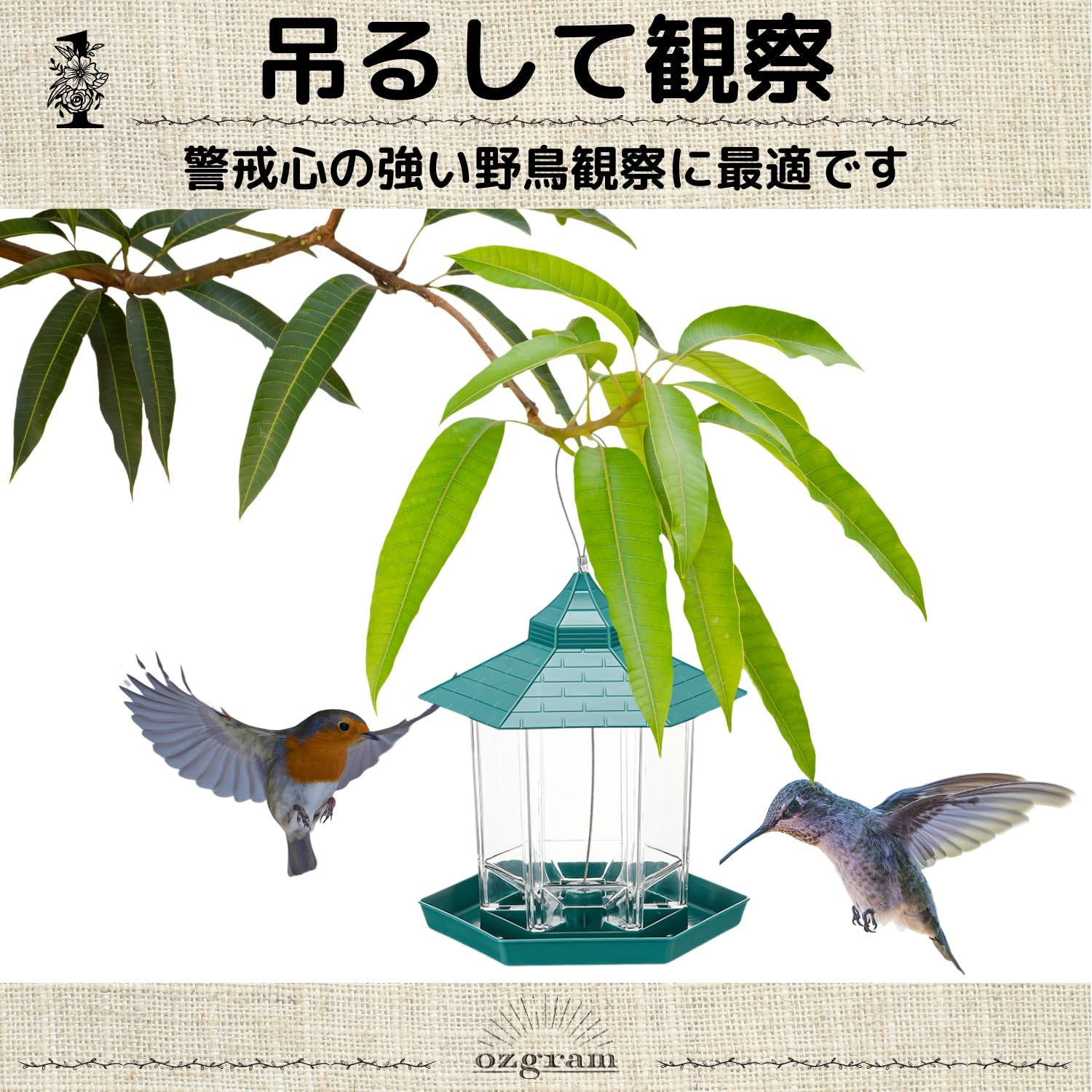 【グリーン】 野鳥給餌器 鳥の餌台 餌入れ 野鳥観察 バードウォッチング 野鳥 屋外 吊下げ 庭 ガーデン ベランダ テラス