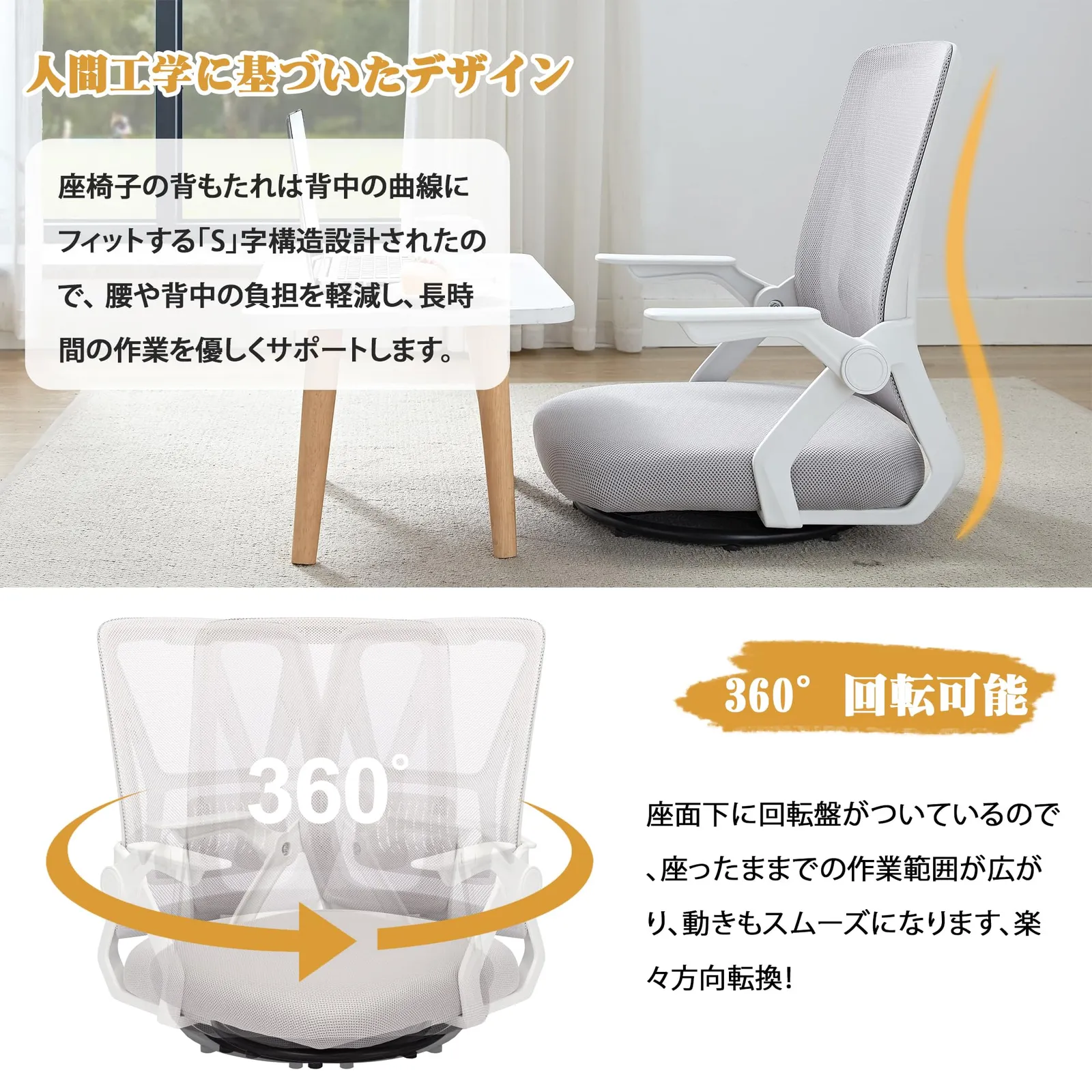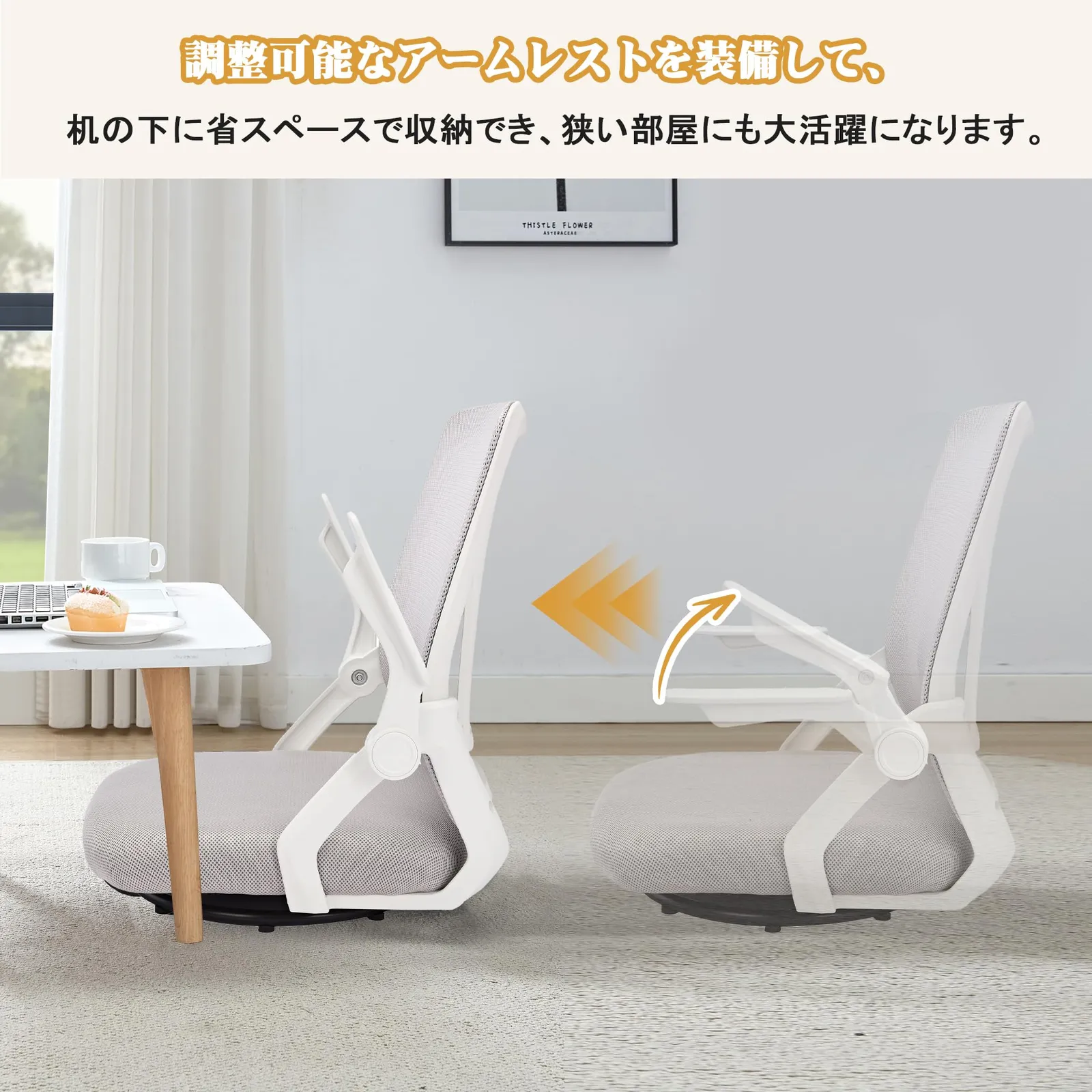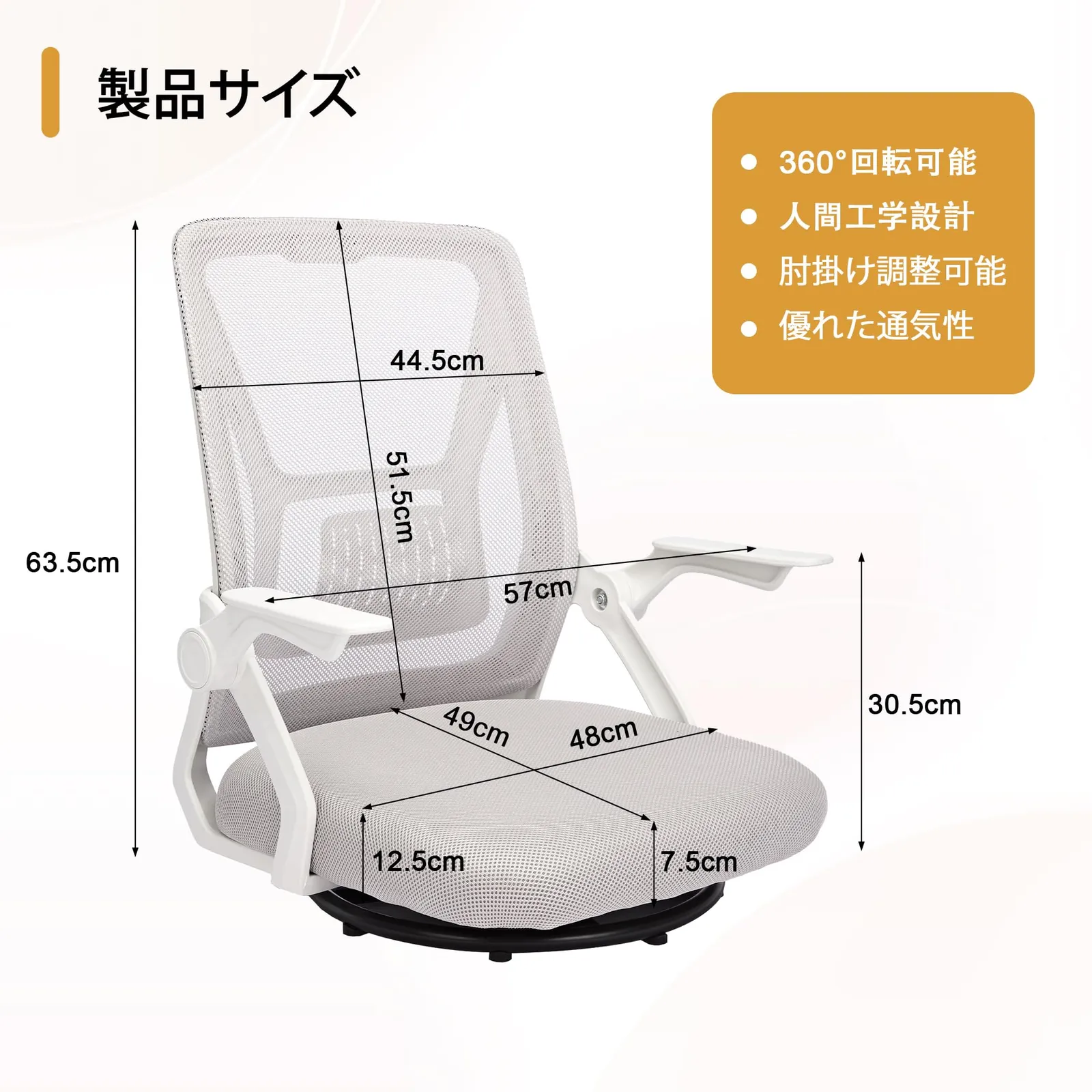 【在庫セール】ライトグレー 省スペース コンパクト 通気性 メッシュ 椅子 一人掛け 肘掛け付き 人間工学 テレワーク デスクチェア フロアチェア 360度回転 回転座椅子 座椅子 VECELO
