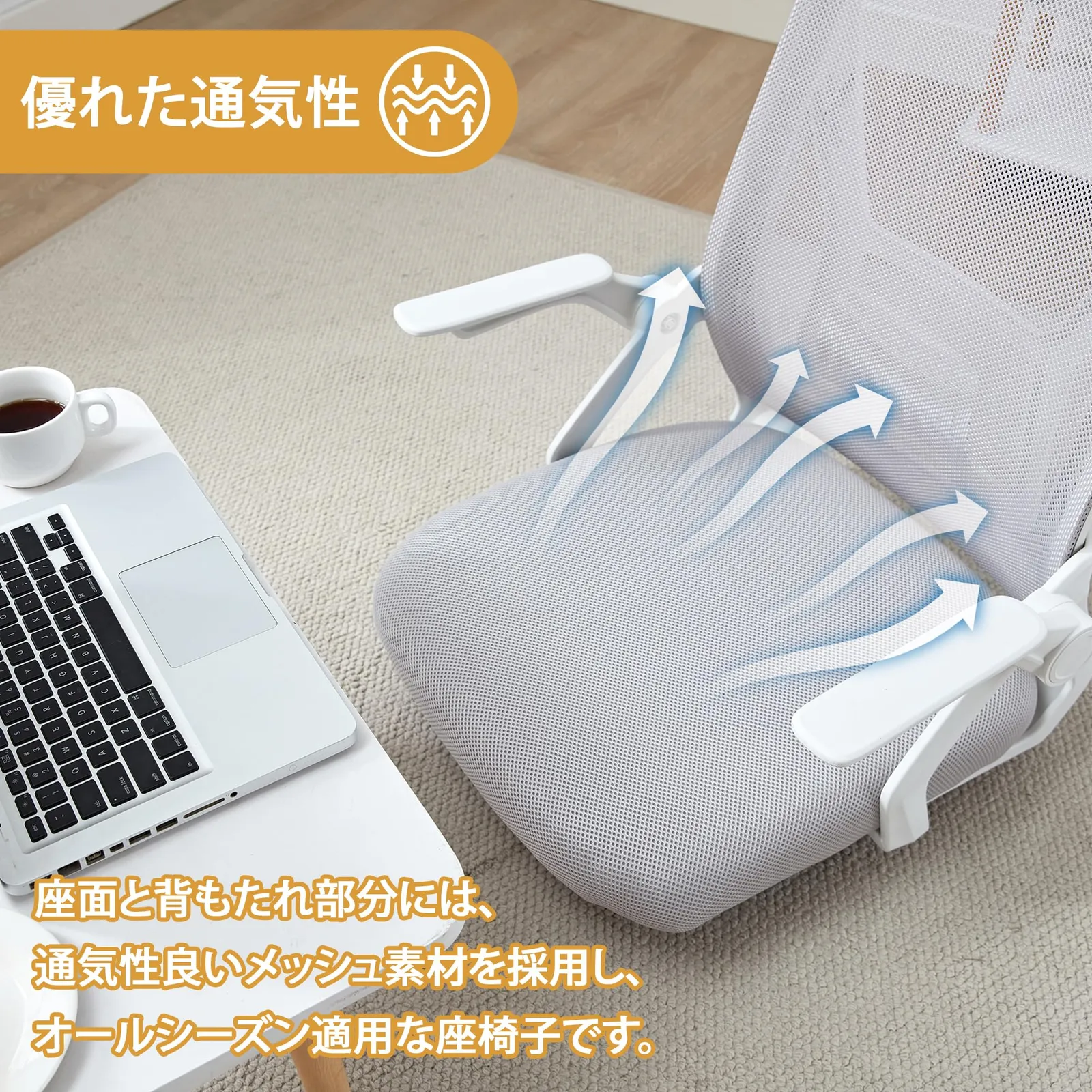 【優れた通気性】座面と背もたれ部分には、通気性良いメッシュ素材を採用し、オールシーズン適用な座椅子です。高密度・高反発座面と合わせて、テレワークや勉強している方は夏場に長時間に座っても蒸れにくく、快適に過ごせます。