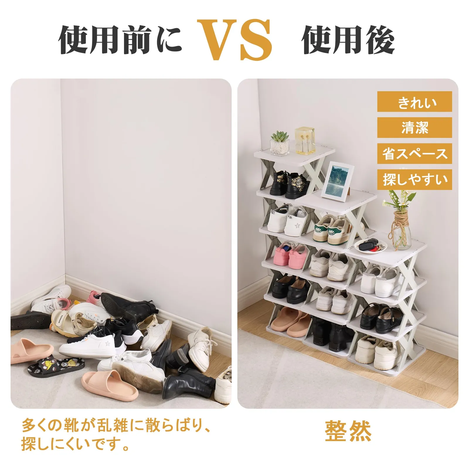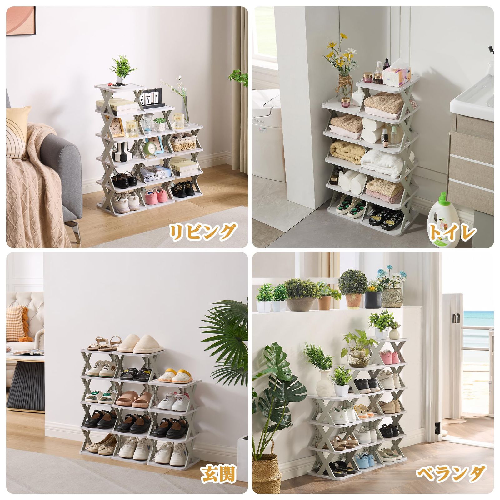 【組立簡単・持ち運び便利】このシューズラックは折り畳み式デザインなので、工具不要で一人でも1分以内に組立できます。このほか、このプラスチック製靴棚は軽量で、子供でも持ち運びやすく、掃除や引っ越しなどの時に便利です。