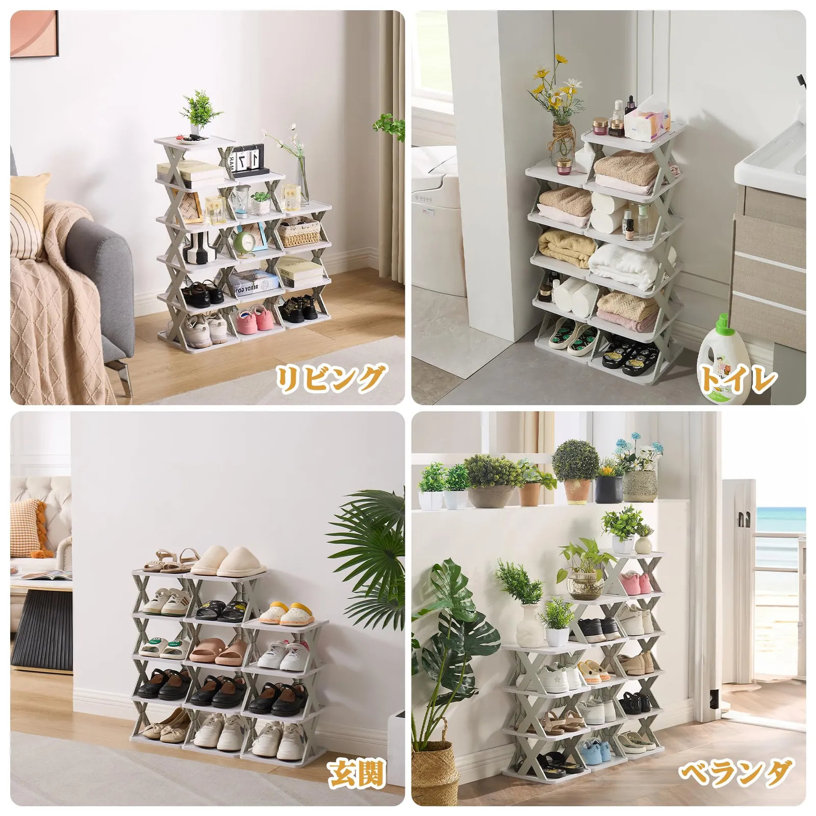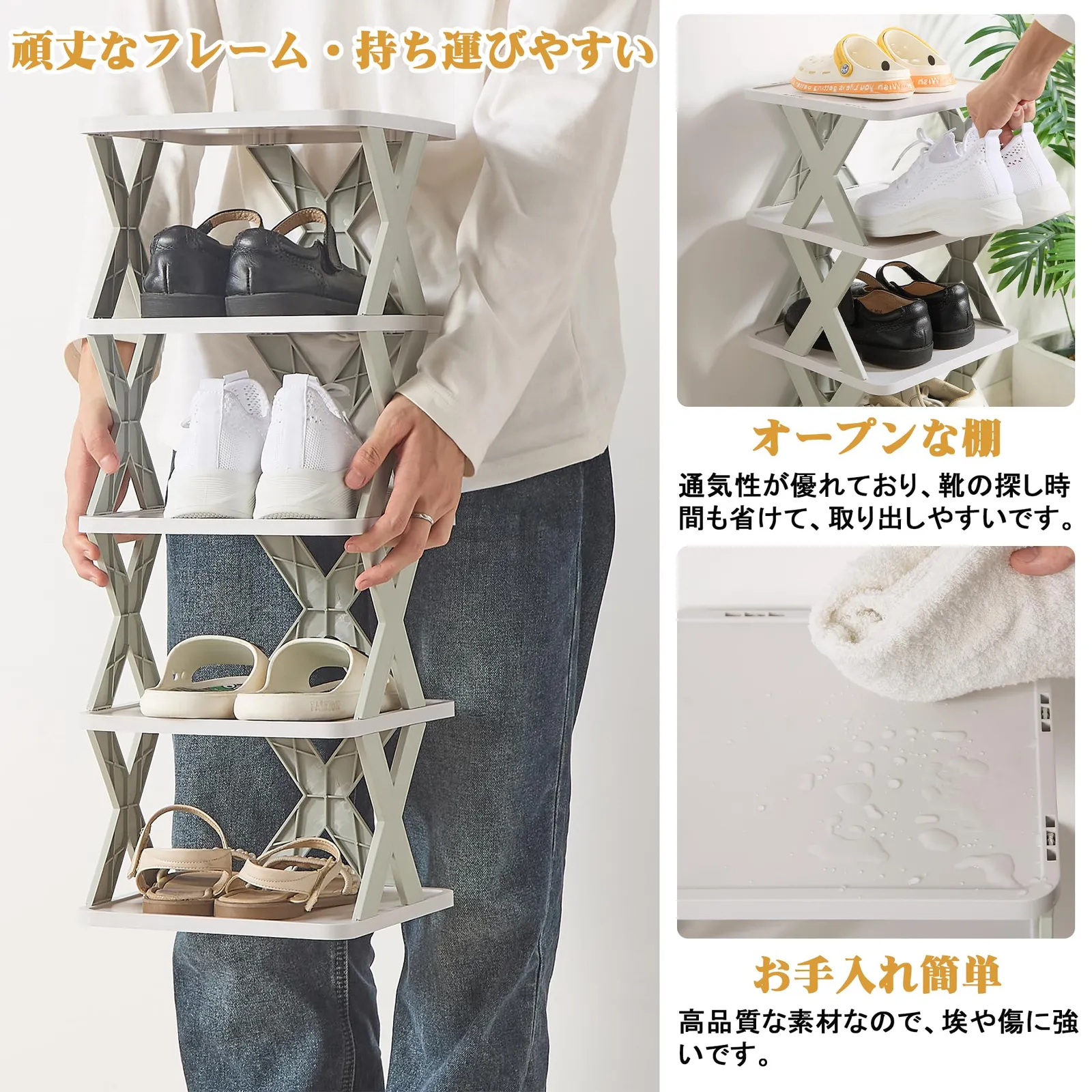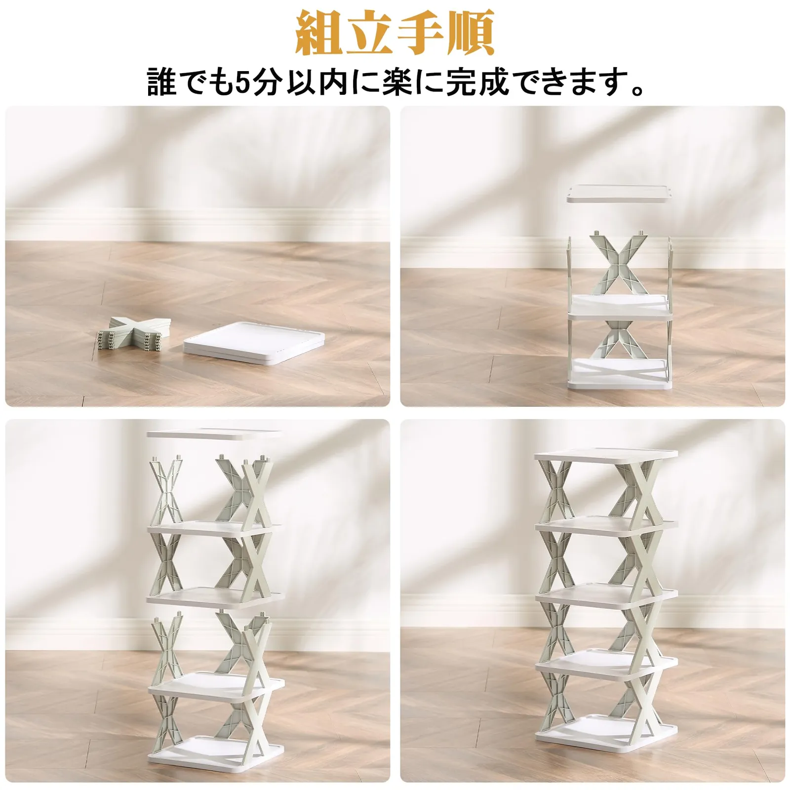 【在庫処分】靴置き 靴棚 コンパクト 軽量 玄関収納 省スペース プラスチック製 工具不要 組立簡単 分割可能 靴入れ 靴ラック 靴収納 防汚 スリム 折り畳み式 据え置き型シューズラック 幅24x奥き26x高49.5cm 4段 ハイヒール X字構造 スリッパ