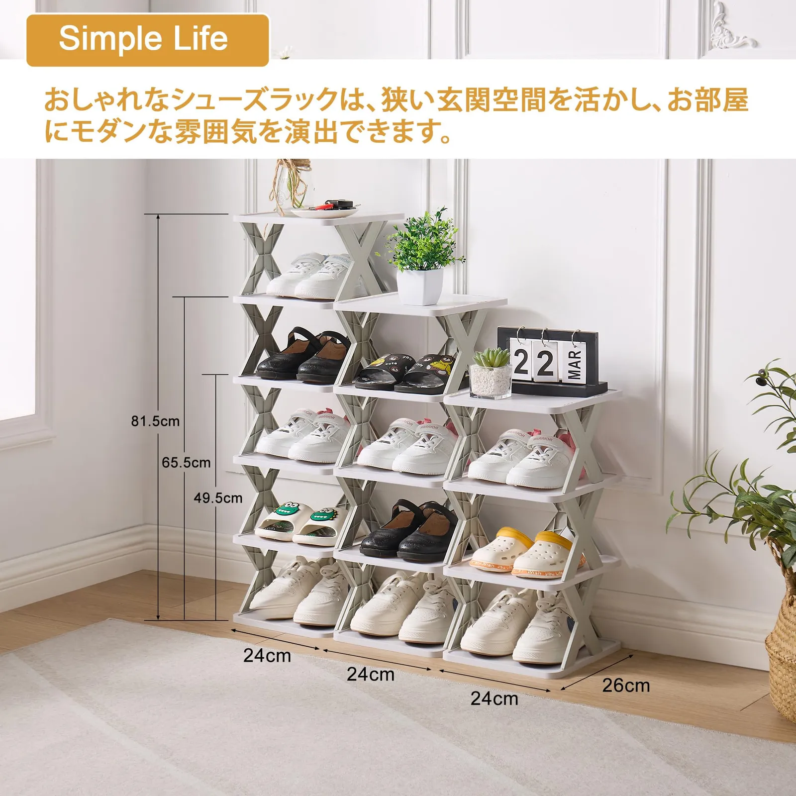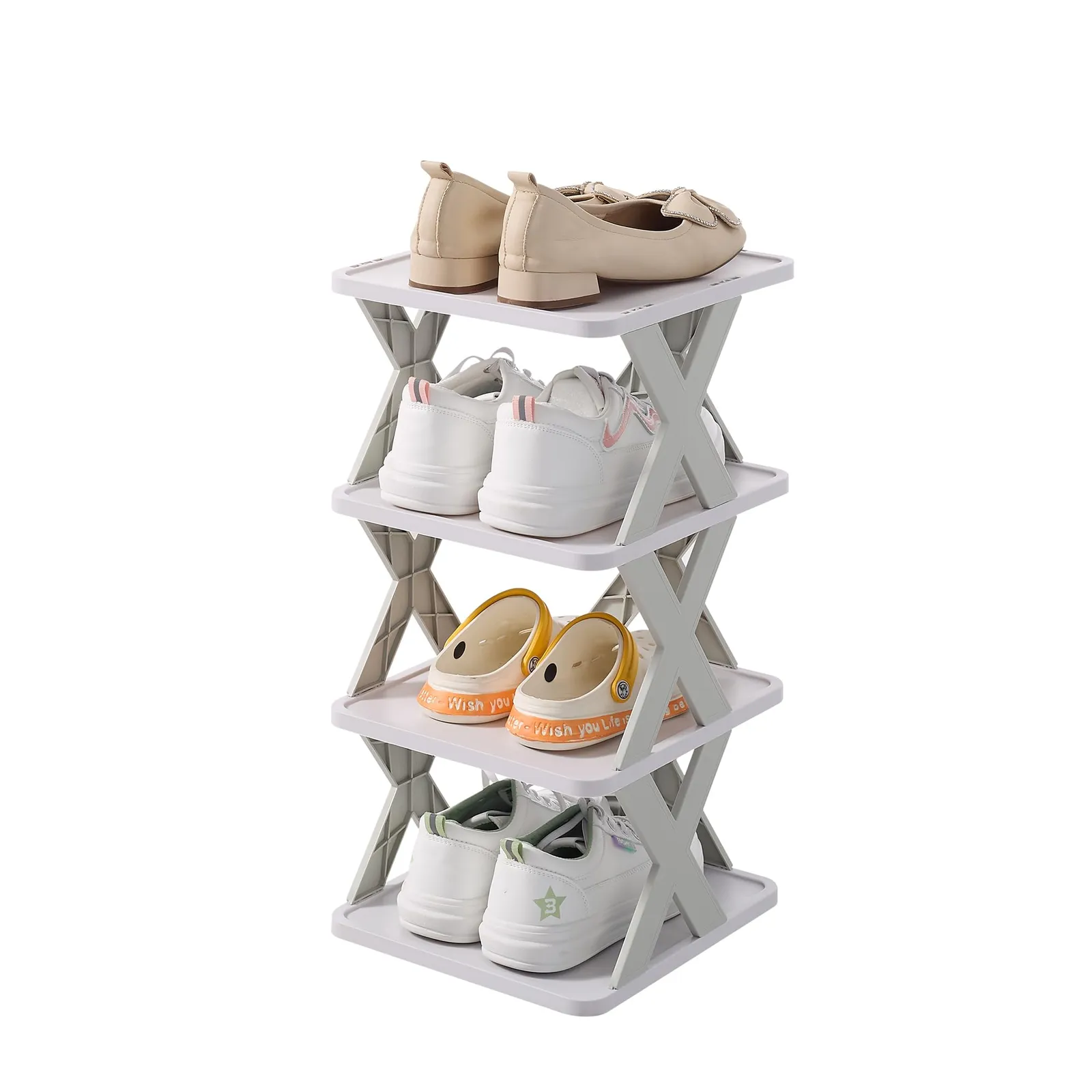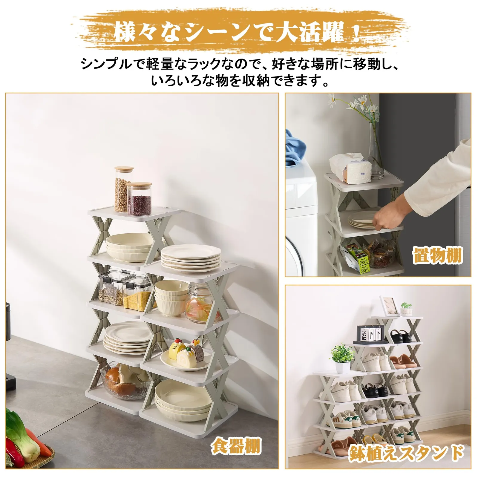【在庫処分】靴置き 靴棚 コンパクト 軽量 玄関収納 省スペース プラスチック製 工具不要 組立簡単 分割可能 靴入れ 靴ラック 靴収納 防汚 スリム 折り畳み式 据え置き型シューズラック 幅24x奥き26x高49.5cm 4段 ハイヒール X字構造 スリッパ