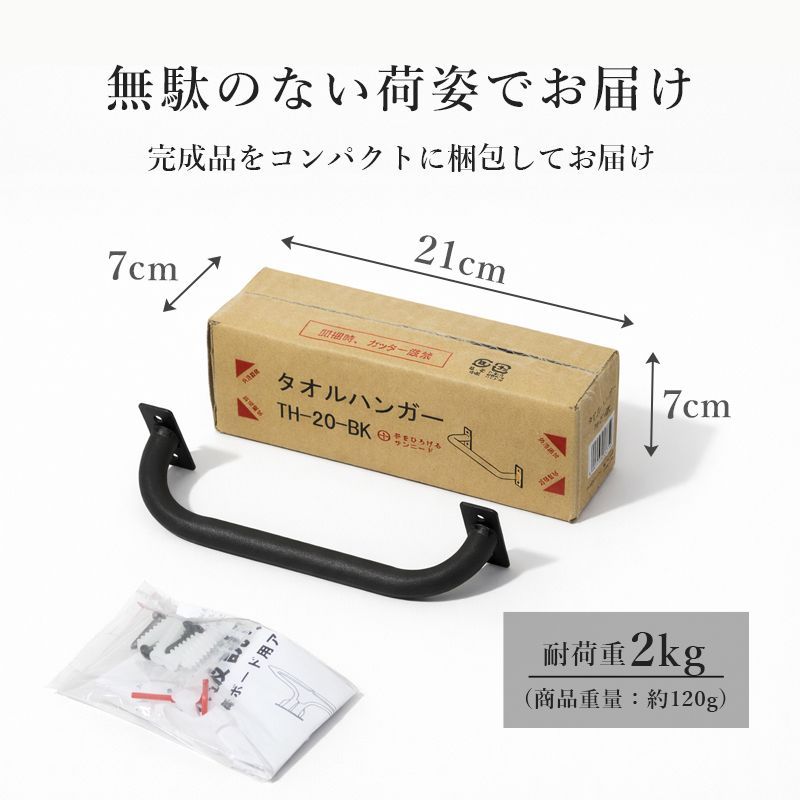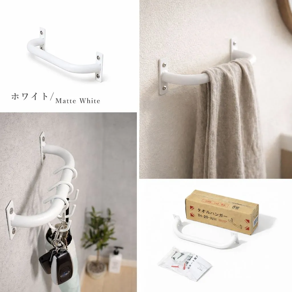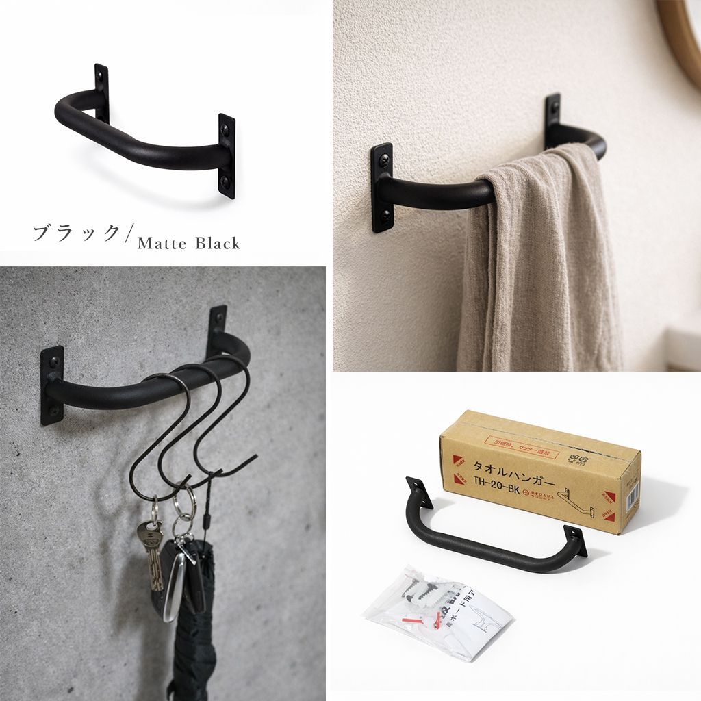 【洗面所やトイレにちょうどいい!幅20cmのタオルハンガー】 壁から距離があるから乾きやすい! タオル同士も密着しにくく、ムレを抑えて快適です。 タオルハンガーとしてだけでなく、玄関のちょい掛けなど 色々な使い方ができます。 ----------------------------------------------------------------- [品名] タオルハンガー W20 [品番] TH-20 [商品サイズ] 外寸:幅20×奥行5.5×高さ5.5(cm) ハンガー部太さ:Φ16mm [梱包サイズ] 21×7×7(cm) [重量] 商品重量:約120g [材質] スチール / 粉体塗装 [仕様] 完成品 [耐荷重] 約2kg