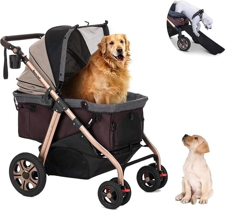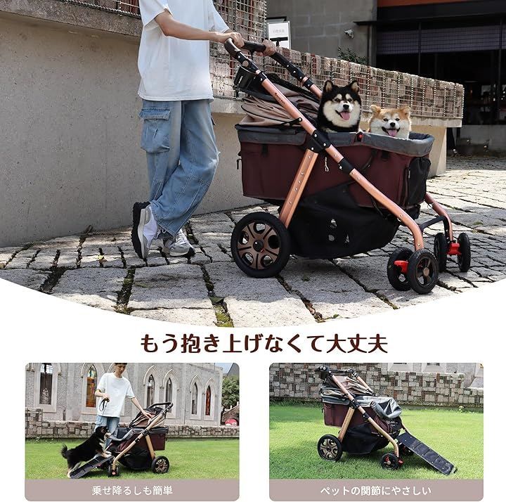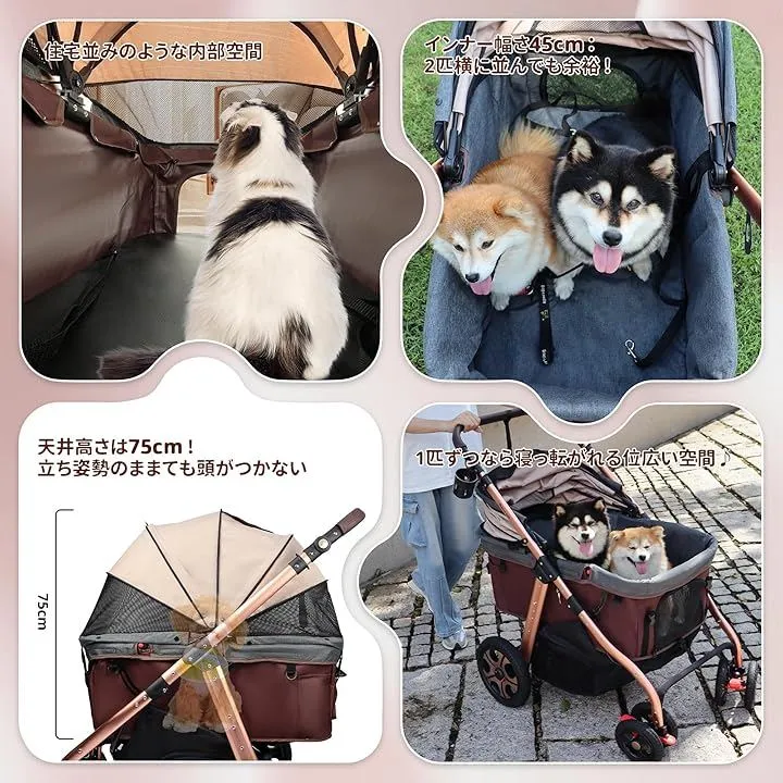 Totoro ball 滑り止めスロープ ペットカート 犬 バギー 4輪 犬用かーと 小型犬 中型犬 大型犬 多頭 ペットキャリーカート ワンタッチ折り畳み 自立式 大口径タイヤ ペットバギー (ベージュ(G5))