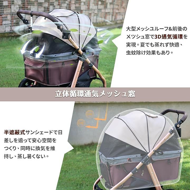 「新作」ペットカートはベビーカー用全アルミフレームを使用し、強度と軽さを同时に実現。軽く女性も取回しが非常にスムーズ。