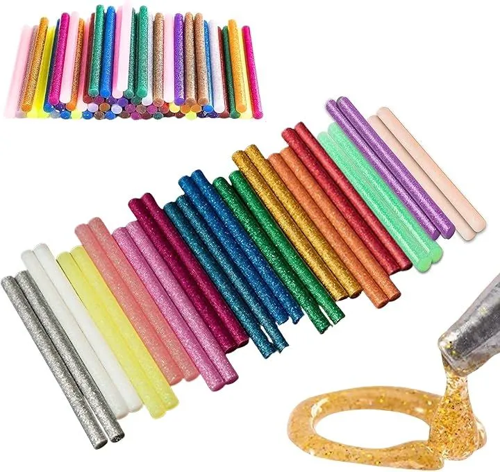 East Leaf グルーガン スティック 7mmx100mm 75本 ミニ用 カラー 工作 手芸 デコ ホットボンド (ラメ入り15色, 100mm 75本)