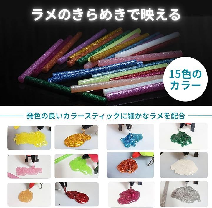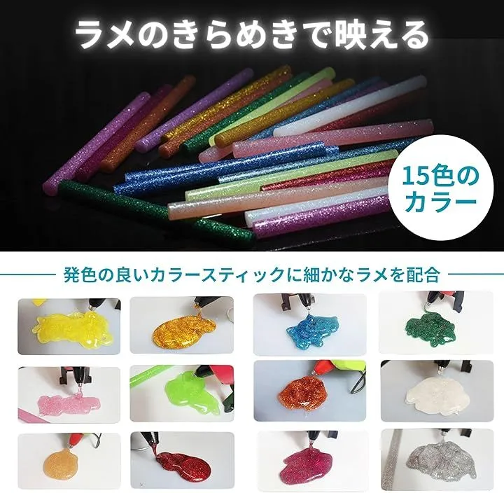 East Leaf グルーガン スティック 7mmx100mm 150本 ミニ用 カラー 工作 手芸 デコ ホットボンド (ラメ入り15色, 100mm 150本)