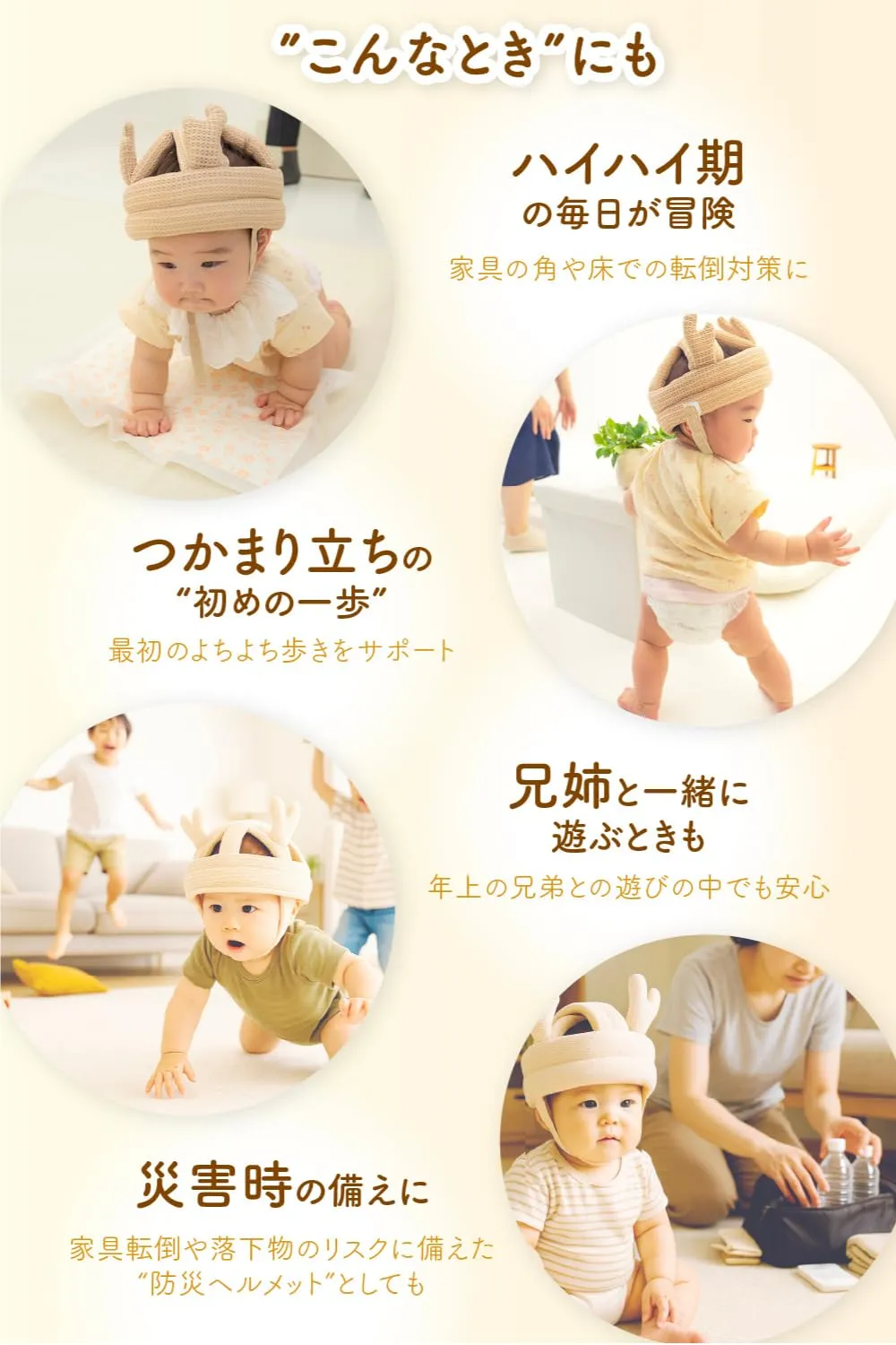 【“ドキッ”を減らしたいママ・パパへ】 ちょっと目を離した瞬間の「ごっつん…!」に悩んでいませんか?かわいい我が子の成長は嬉しい反面、目を離したすきの“ヒヤッ”とする不安を減らしたい…!そんなママパパのために、ベビーヘルメット「コロバンビ」は開発されました。ハイハイ・つかまり立ち・よちよち歩きの時期に頼れるアイテムです。