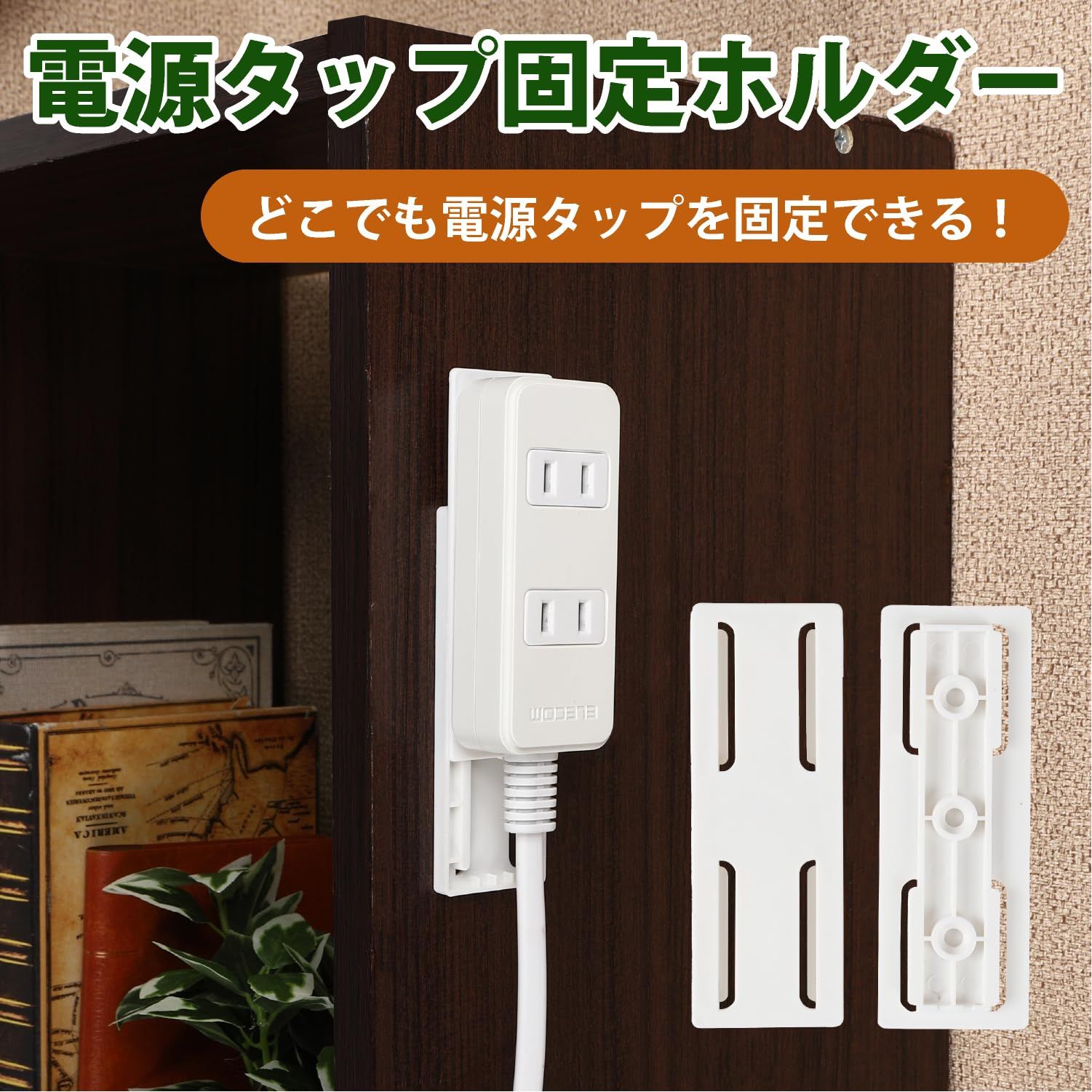 電源タップ コンセントタップ 固定ホルダー 5個セット コンセント 壁 固定 壁掛け 木ネジ 壁取付用 穴あけ&ネジ止め不要 取り付け簡単 (5)
