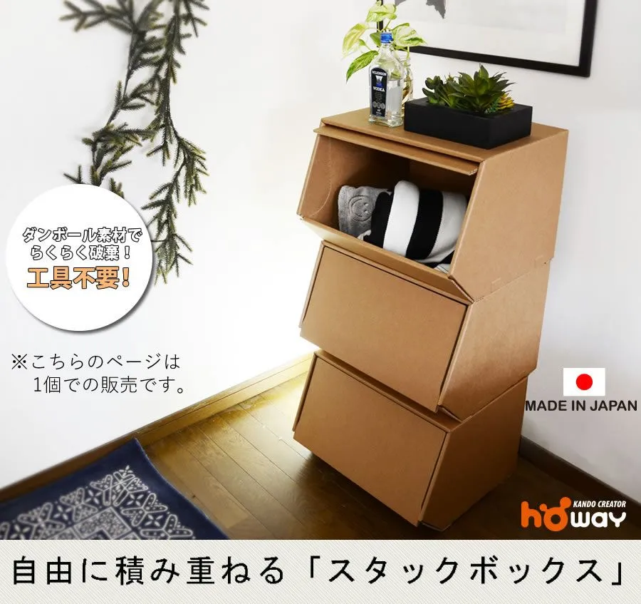 スタックボックス単品 |大容量 ダンボール カラーボックス マルチラック 廃棄簡単 段ボール家具 収納 本棚 家具 段ボール/壁面収納 |スタックボックス単品0140-120