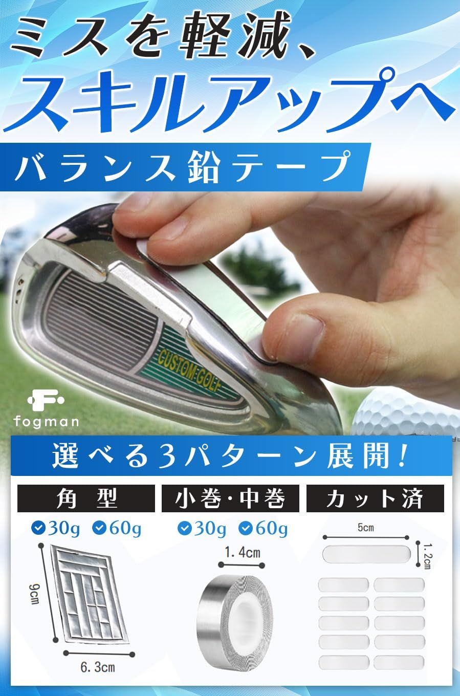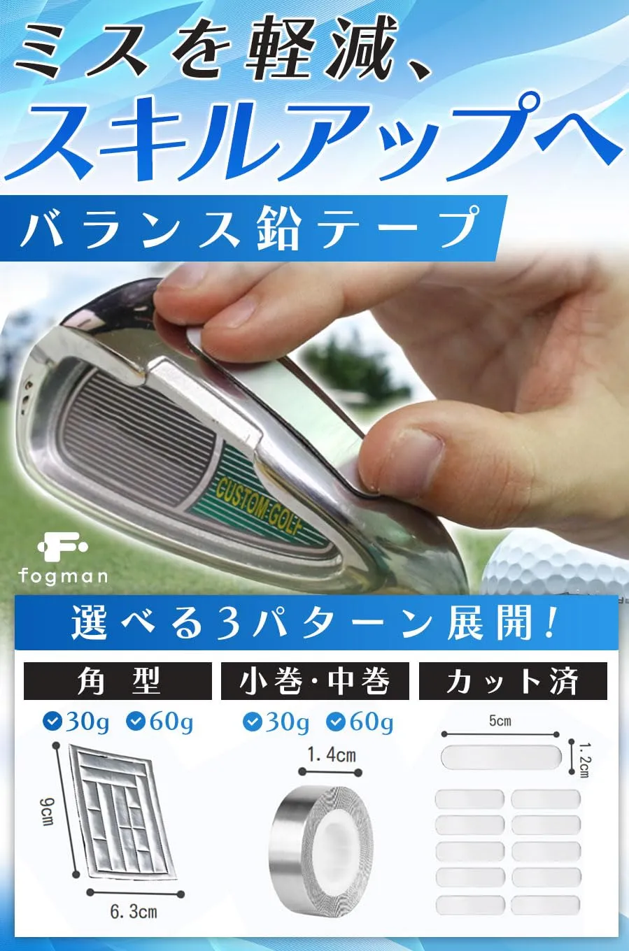fogman 鉛テープ ゴルフ テニス ラケット 鉛シート ウェイト バランス シャフト パター