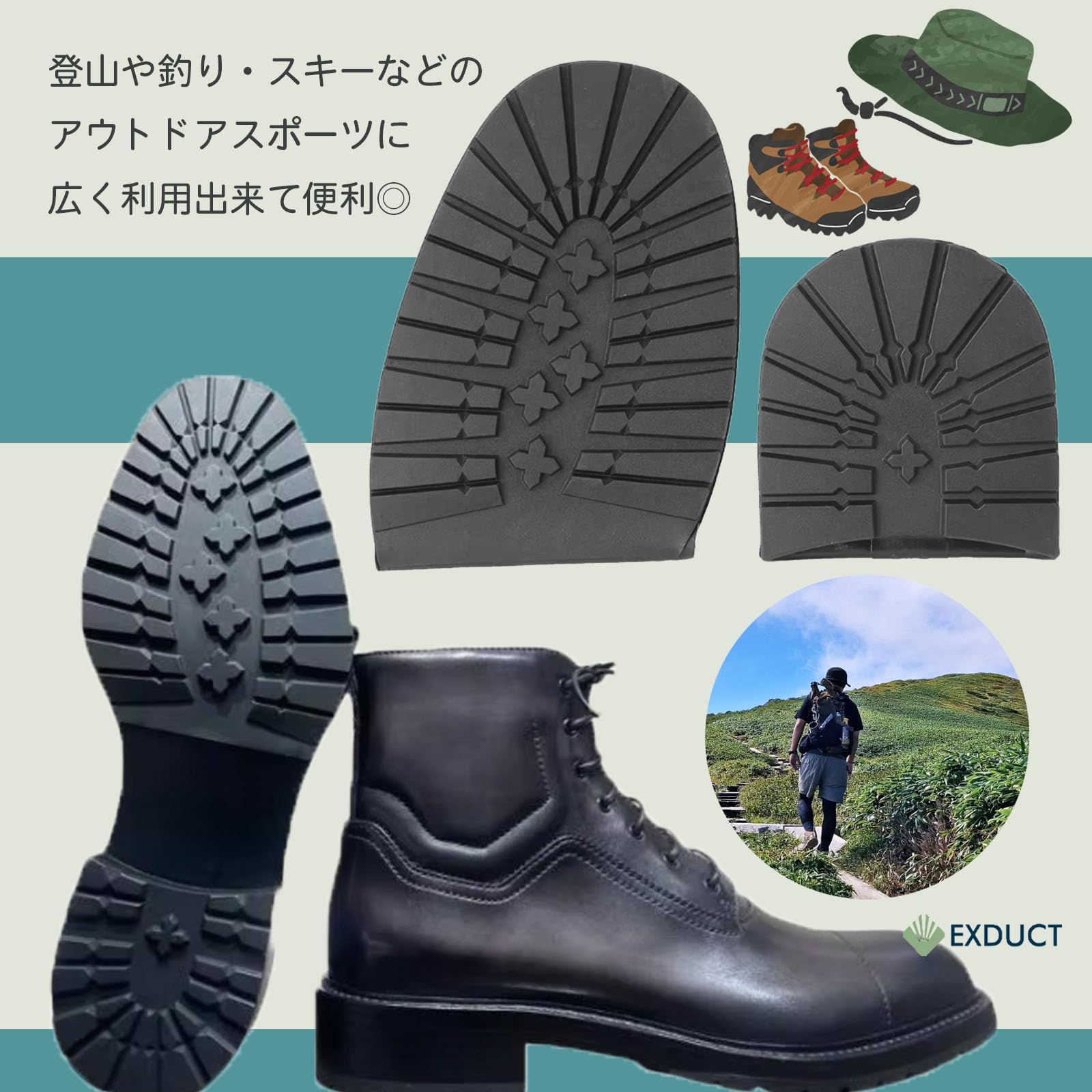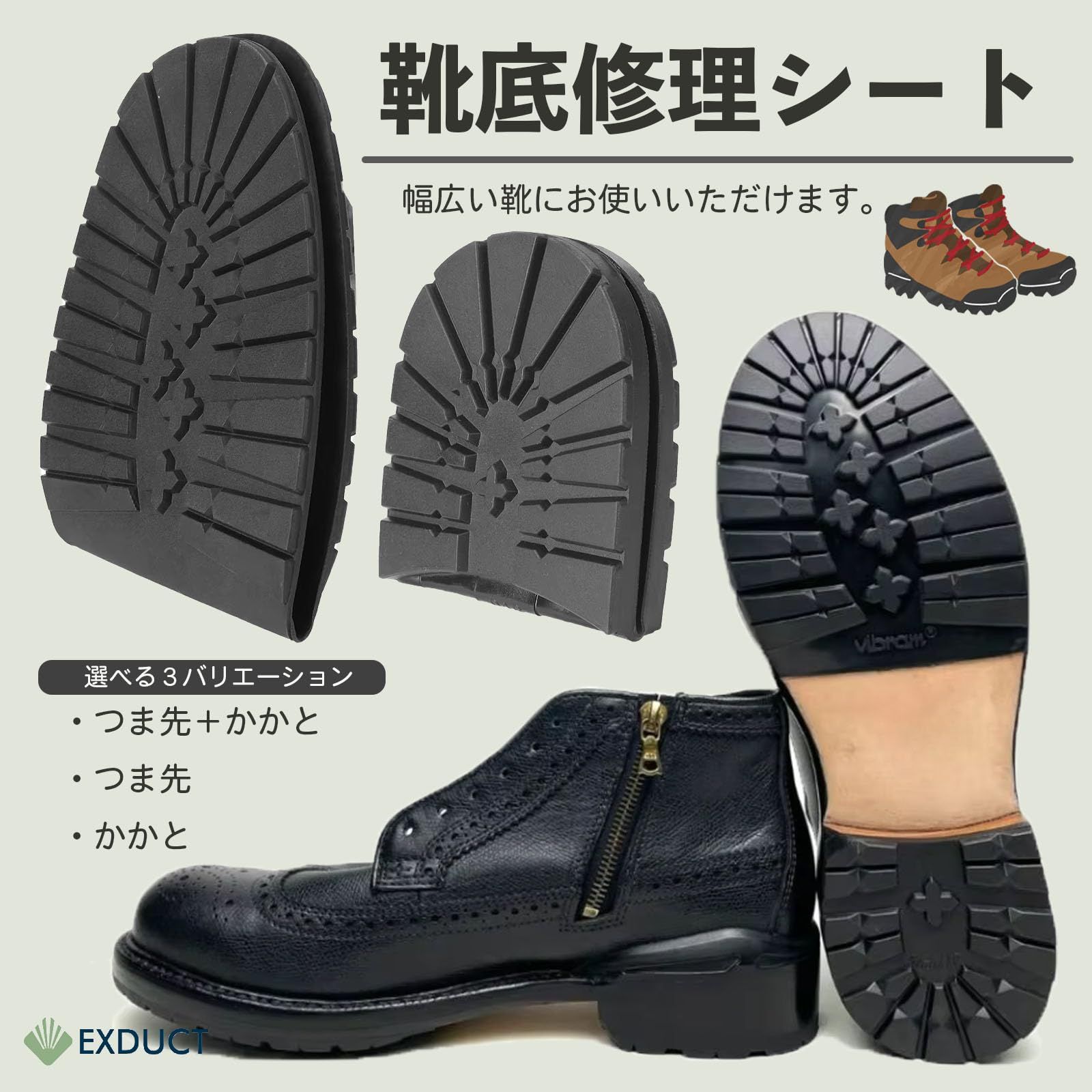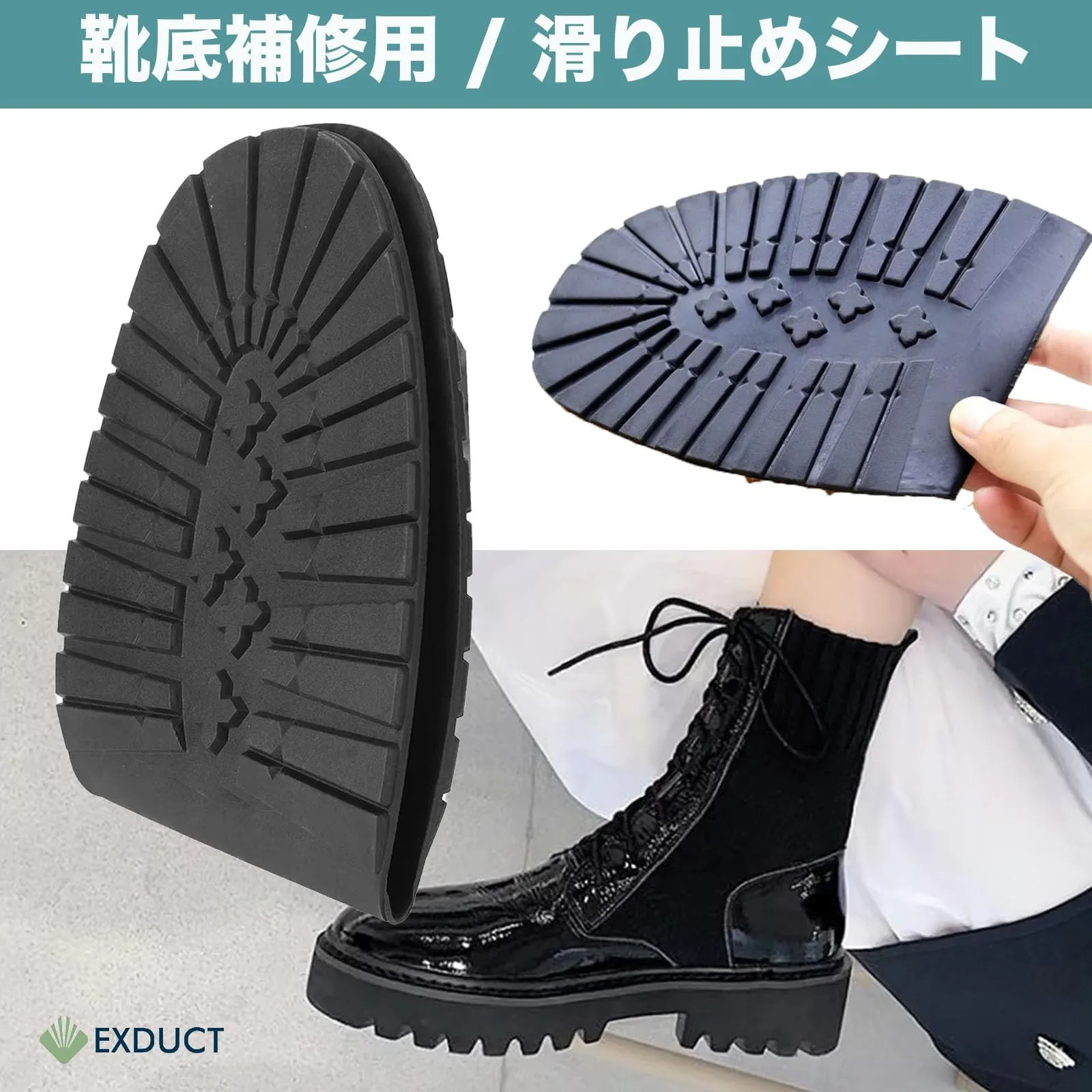 靴底の補修および滑り止めの強化にご使用しただけます。溝がしっかり彫られたデザインなので雨やぬかるんだ道でも滑りにくくなります。