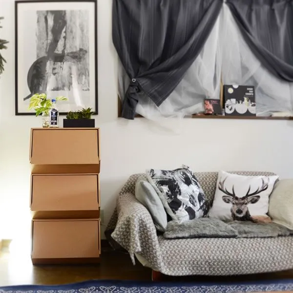 ■ スライド式の扉がフルオープンする大容量収納ボックスです。 子どもも安心して使える金具不使用!ダンボールの折り返しのみで作れます。 ナチュラルな色合いはリビングや子ども部屋にもピッタリ! 3段マルチラックと同じサイズですので組み合わせて使用すれば ランドセルラックや チェストとして使っていただくことも可能です。