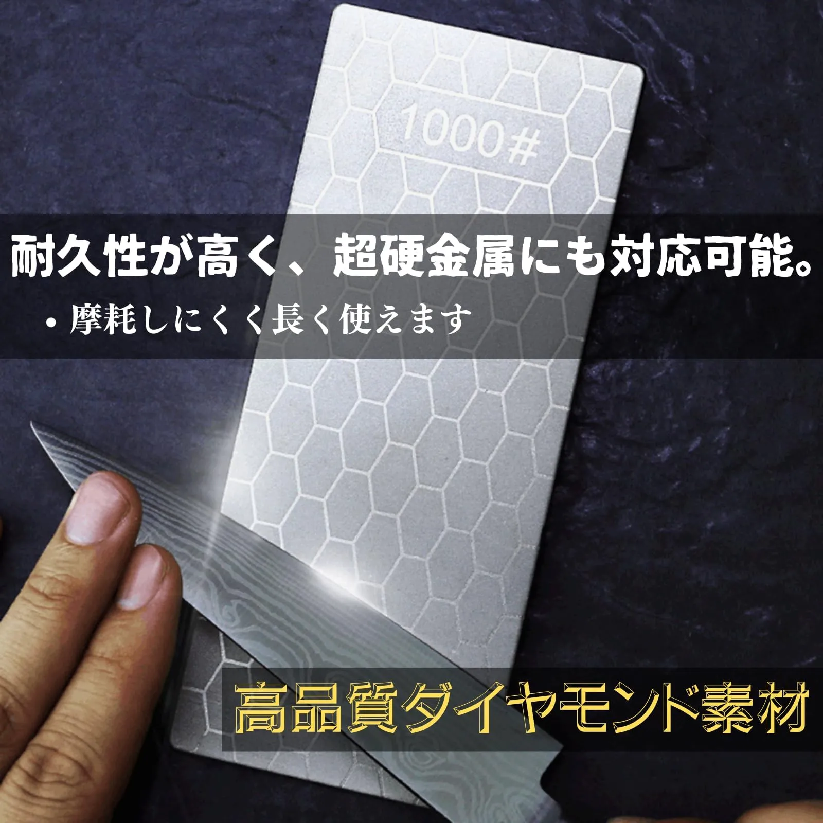 【高品質ダイヤモンド素材】耐久性が高く、超硬金属にも対応可能。摩耗しにくく長く使える、 研磨力が優れているため硬い材質も研ぐことができます。砥石面の修正が不要です。