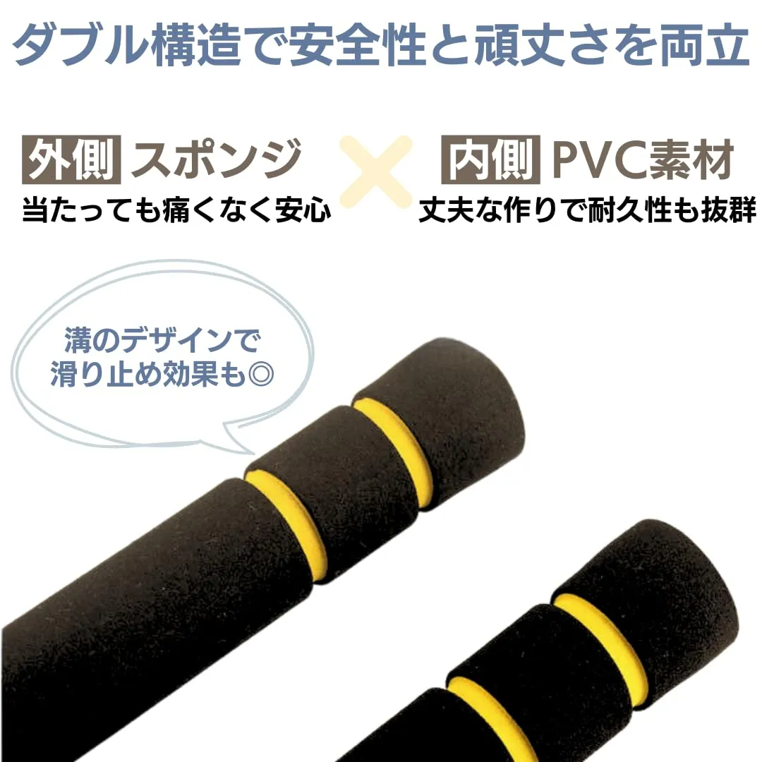 【スポンジとPVCのダブル構造】外側に軽量スポンジを採用し、当たっても安心。内側にはしっかりとしたPVC素材で耐久性も抜群。安全性と頑丈さを両立。女性や子供でも安心して使用できるヌンチャクです。
