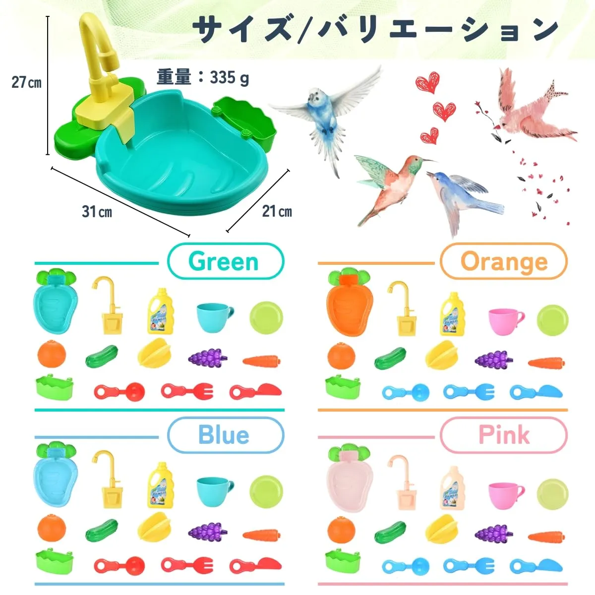 【商品仕様】サイズ:約31㎝x21㎝x27㎝、重量:約335g、付属品:おもちゃアクセサリーx14点(デザインの変更により、掲載画像と実際のお色が異なる場合がございます。)