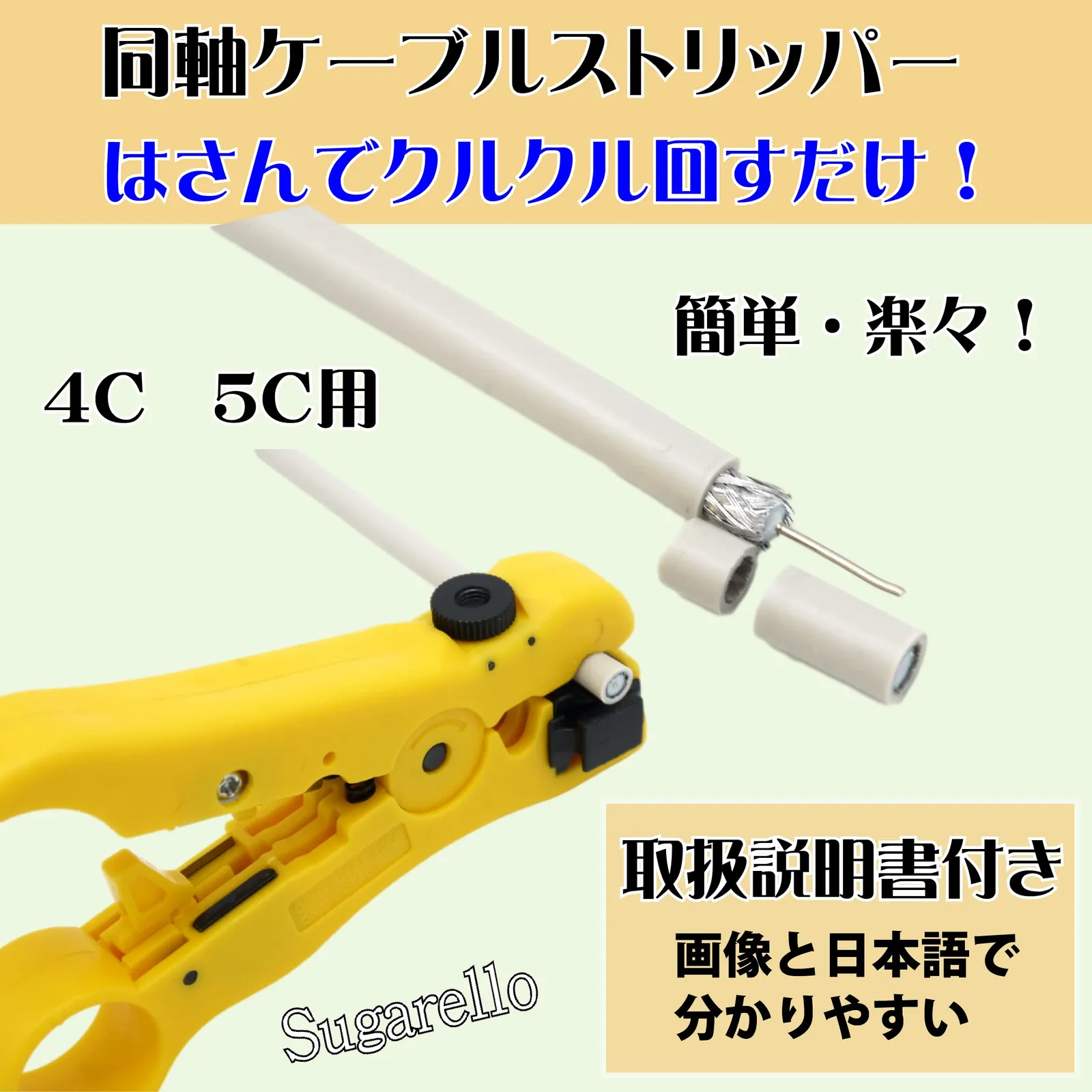 Sugarello 同軸ケーブルストリッパー ワイヤーストリッパー 同軸ストリッパー 皮剥き器 ケーブルストリップ 同軸 ケーブルカッター 電気工具 4C 5C 用