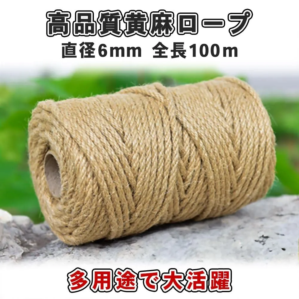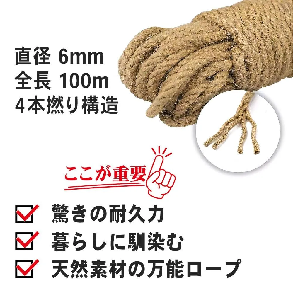 麻縄 6mm 100m 園芸 麻紐 DIY リペアロープ 猫爪とぎ キャットタワー