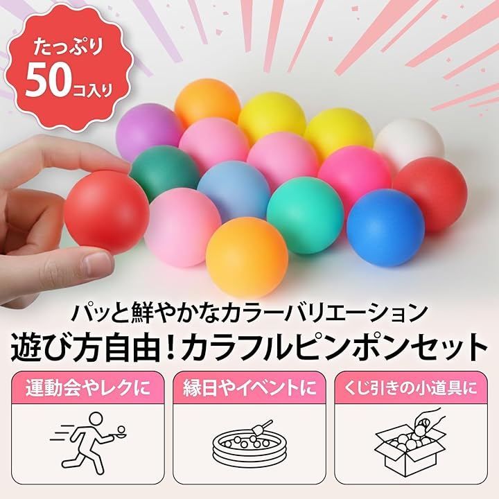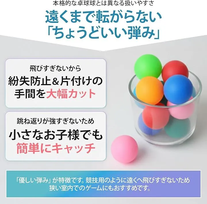 「幅広い使い方に対応」プラスチック製なので軽くて扱いやすく、卓球の練習用やイベント用、装飾アイテムとしても活躍します。