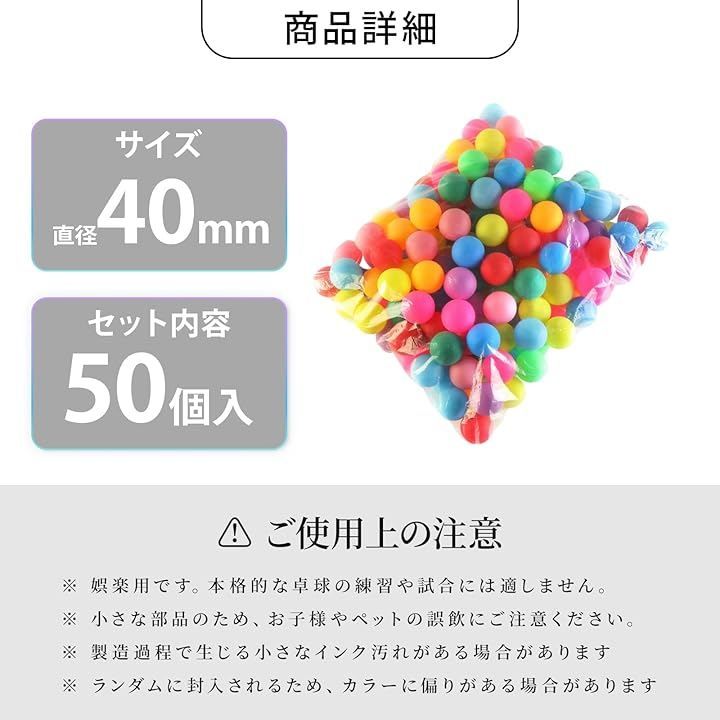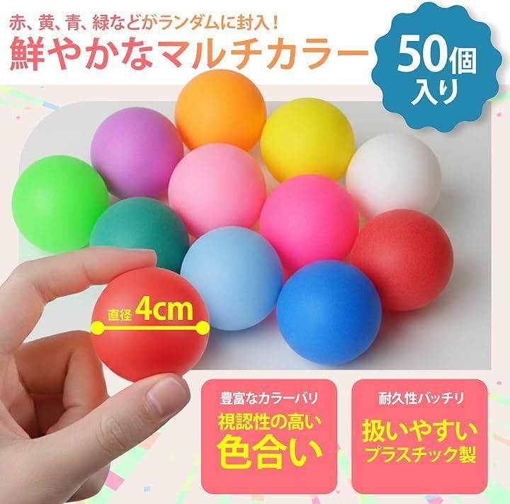 CocoFill ピンポン玉 卓球 ボール カラフル カラーボール くじ引き ビンゴ 娯楽 プラスチック 50個セット (マルチカラー, 4センチメートル)