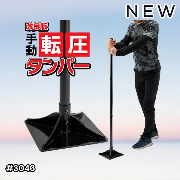 地面をしっかりと締め固めることができる、手動式の転圧タンパーです。