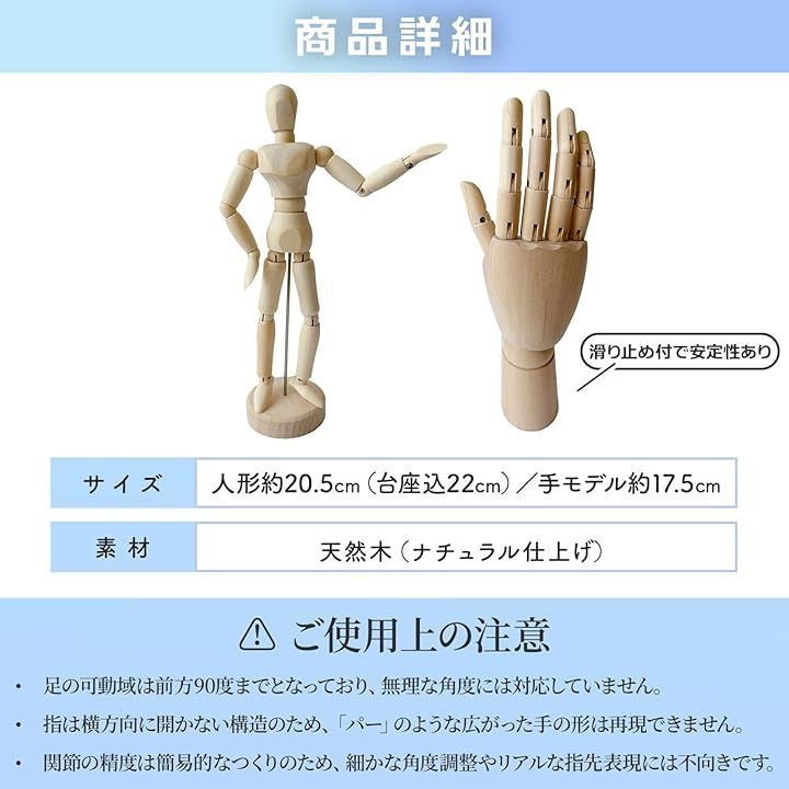 「商品詳細」*人形の高さ:約20.5cm(台座込み22cm) / *手の高さ:約17.5cm / *素材:天然木(ナチュラル仕上げ)