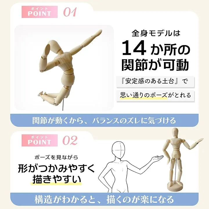 CocoFill デッサン人形 デッサンドール モデル 全身 可動 関節 美術 国内検品 木製 (人形)